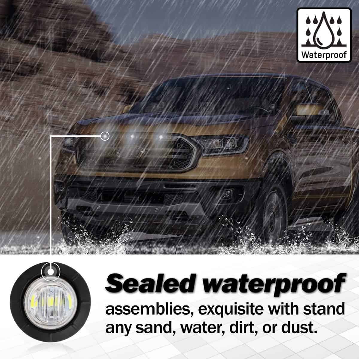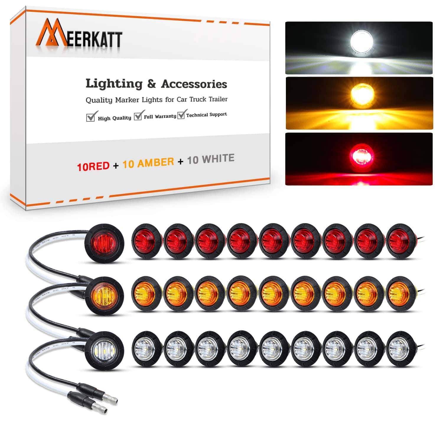 1. MARCA: Meerkatt (Paquete de 30) mini luces redondas de 3/4 pulgada – 10 ámbar, 10 rojas y 10 blancas. A prueba de golpes, a prueba de polvo.