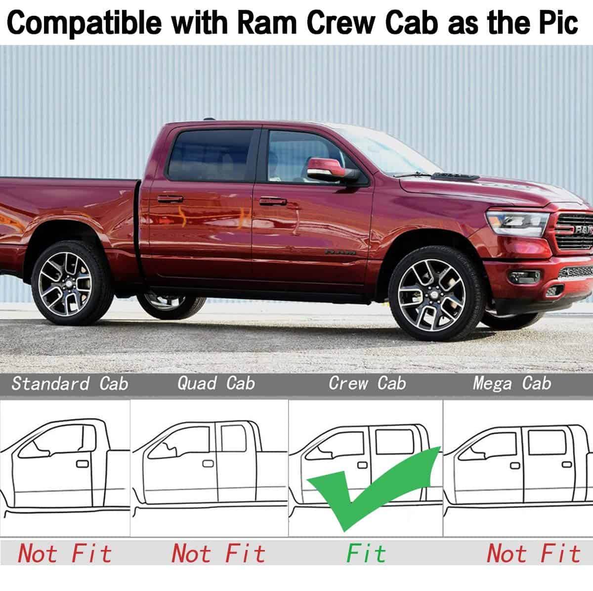 1. AJUSTE PERFECTO: Compatible con Dodge 2019 Ram 1500 Classic Crew Cab, 2013 2014 2015 2016 2017 2018 Dodge Ram 1500/2500/3500 Crew Cab, recuerde verificar dos veces los modelos de su automóvil antes de la compra.