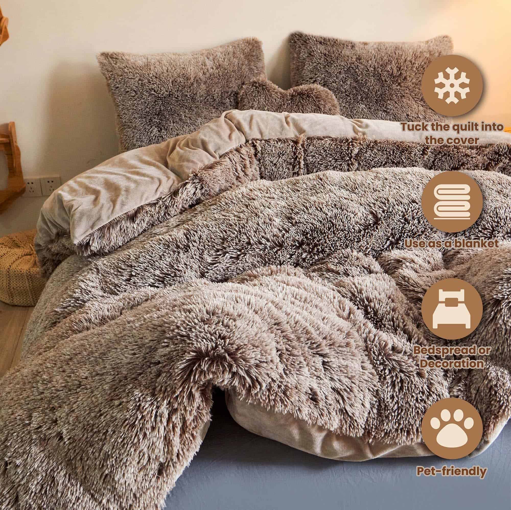 MEGO Luxury Shaggy Juego de Funda de Edredón de Piel