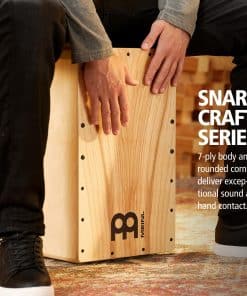 Los cajones Snarecraft de Meinl combinan una puntuación rítmica articulada con una calidad tonal cálida para dar a los músicos un sonido enfocado y un amplio rango dinámico. Hechos de madera de abedul báltico, los cajones Snarecraft de Meinl responden con un golpe bajo contundente y tonos de golpe nítidos. Los sonidos de snares altamente expresivos provienen de dos juegos internos de snares fijados contra la placa frontal. Las esquinas redondeadas en la superficie de juego ofrecen total comodidad al tiempo que maximizan tu toque.