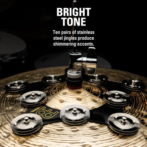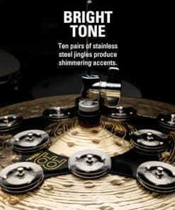 Para obtener un sonido de tambor altamente receptivo, el Meinl Super Flex Hihat Tambourine está fabricado con un marco flexible y ligero que se adapta al perfil de tu platillo. Esto enfoca toda la energía en las platinelas, activándolas completamente para brindarte una respuesta sobresaliente de tambor hihat sin una sensación pesada y retrasada. El Super Flex Hihat Tambourine está equipado con diez pares de platinelas de acero inoxidable que ofrecen un sonido brillante con mucho volumen para destacar en la mezcla, ya sea que lo necesites para acentos de pie o para alegrar tus patrones de pegada. Este accesorio es perfecto para agregar y quitar rápidamente de tu hihat en lugar de lidiar con accesorios de tuerca mariposa. Con una medida de 9.5 de ancho, tienes más área ocupada por platinelas para asegurar que tus acentos de tambor se escuchen claramente en cualquier entorno. Ideal para uso en vivo o en estudio.