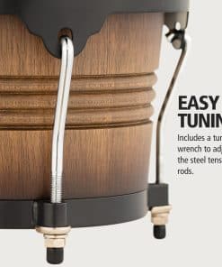 Los bongos de madera de la serie Marathon FWB190 de MEINL Free Ride son perfectos para el principiante ambicioso y para aquellos que buscan un set asequible que tiene características profesionales excepcionales. El Sistema de Suspensión Free Ride patentado por MEINL significa que los tambores están unidos sin agujeros perforados en los cascos. Esto maximiza la cantidad de resonancia y tonos cálidos que se sabe que produce la madera de goma. Todos los soportes y monturas de bongos de MEINL están equipados para sujetar de forma segura el sistema de montaje Free Ride en su lugar. Los bongos de madera de la serie Marathon están equipados con parches de piel de búfalo seleccionados a mano que producen agudos nítidos con tonos cálidos, y son fácilmente ajustables. Se incluye una llave de afinación, bolsa de accesorios y aceite de mantenimiento. Combinados con cualquier Conga de MEINL, estos bongos son un gran comienzo o complemento para tu configuración de percusión! El Soporte de Bongo Profesional de Meinl (Modelo TMB-S) para músicos sentados también te permitirá instalarlos cómodamente con tu kit de batería.