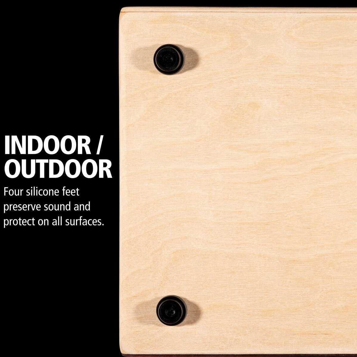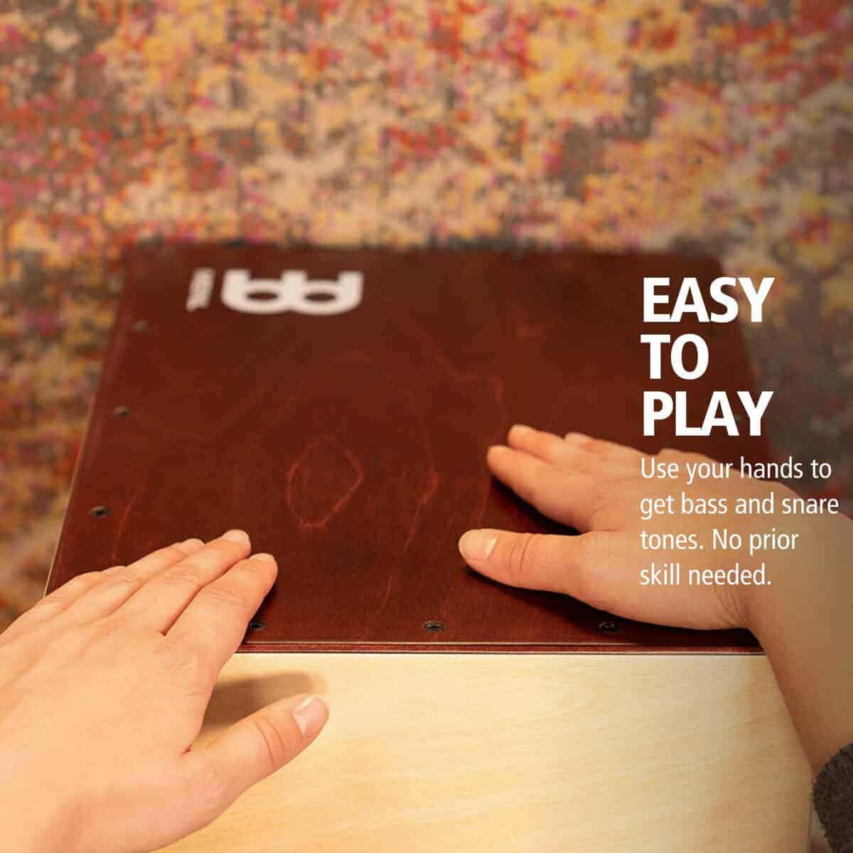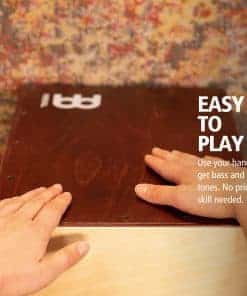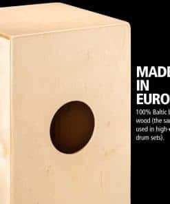 Este cajón es el instrumento de percusión acústico de madera en el que te sientas y tocas con tus manos (pronunciado ‘kah-hone’). A veces se le llama cajón de ritmos o caja de tambor. El Meinl Percusión Jam Cajón Compacto con sordina está hecho en Europa con abedul báltico al 100%. El abedul báltico tiene una nota de bajo completa y un tono cálido. Esta especie de madera también se utiliza en la construcción de baterías de alta gama para músicos serios sobre el sonido. En el interior hay dos juegos de alambres de sordina de acero enrollado encajados contra la superficie de reproducción. Estos son el mismo tipo de sordinas que se encuentran en las cajas, y te dan un tono nítido. Un puerto de sonido en la parte trasera ayuda a desarrollar notas graves y es un lugar perfecto para un micrófono. Los pies de silicona antideslizantes permiten que el cuerpo resuene al máximo mientras proporciona estabilidad. Este instrumento es ideal para conciertos acústicos cuando no se puede utilizar una batería completa, y su tamaño compacto está diseñado para ser fácil de transportar. Mide 10 1/4″ de ancho x 15″ de alto x 10 1/4″ de profundidad (para adultos). El Jam Cajón está diseñado para facilitar el transporte y el uso directo para que cualquiera pueda tocarlo sin importar el nivel de habilidad o la edad. No se requiere experiencia musical. Diseñado en Alemania.