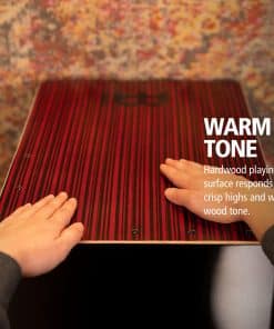 Un orificio de sonido instalado en fábrica te da graves extra profundos que llenan la habitación. Viene con tres sets de cuerdas internas fijas de snares para dar a tu sonido un estallido nítido. La superficie de juego de madera dura responde a dinámicas suaves y golpea fuerte a volúmenes más altos; el resistente cuerpo compuesto moderno resuena con proyección completa y tono cálido. El puerto está permanentemente asegurado para obtener el mayor sonido de graves. No interfiere con los micrófonos y no requiere ajustes. El cajón Meinl Jumbo Backbeat mide 13″ W x 21 1/4″ H x 13″ D y pesa 12.2 libras. Se considera un tamaño jumbo y es más grande que nuestros cajones tradicionales para obtener graves más profundos. Puedes tocarlo junto a guitarras en shows acústicos, con música de adoración, en el estudio, o en jams al aire libre. Cuatro pies de silicona sólida mantienen el cajón estable, evitan arañazos y eliminan las vibraciones locas en cualquier superficie. Meinl es un fabricante familiar de instrumentos musicales y una marca establecida 1951 en Alemania. Nuestros expertos diseñadores alemanes tienen relaciones profundas con nuestros constructores para asegurarte la absoluta mejor calidad.