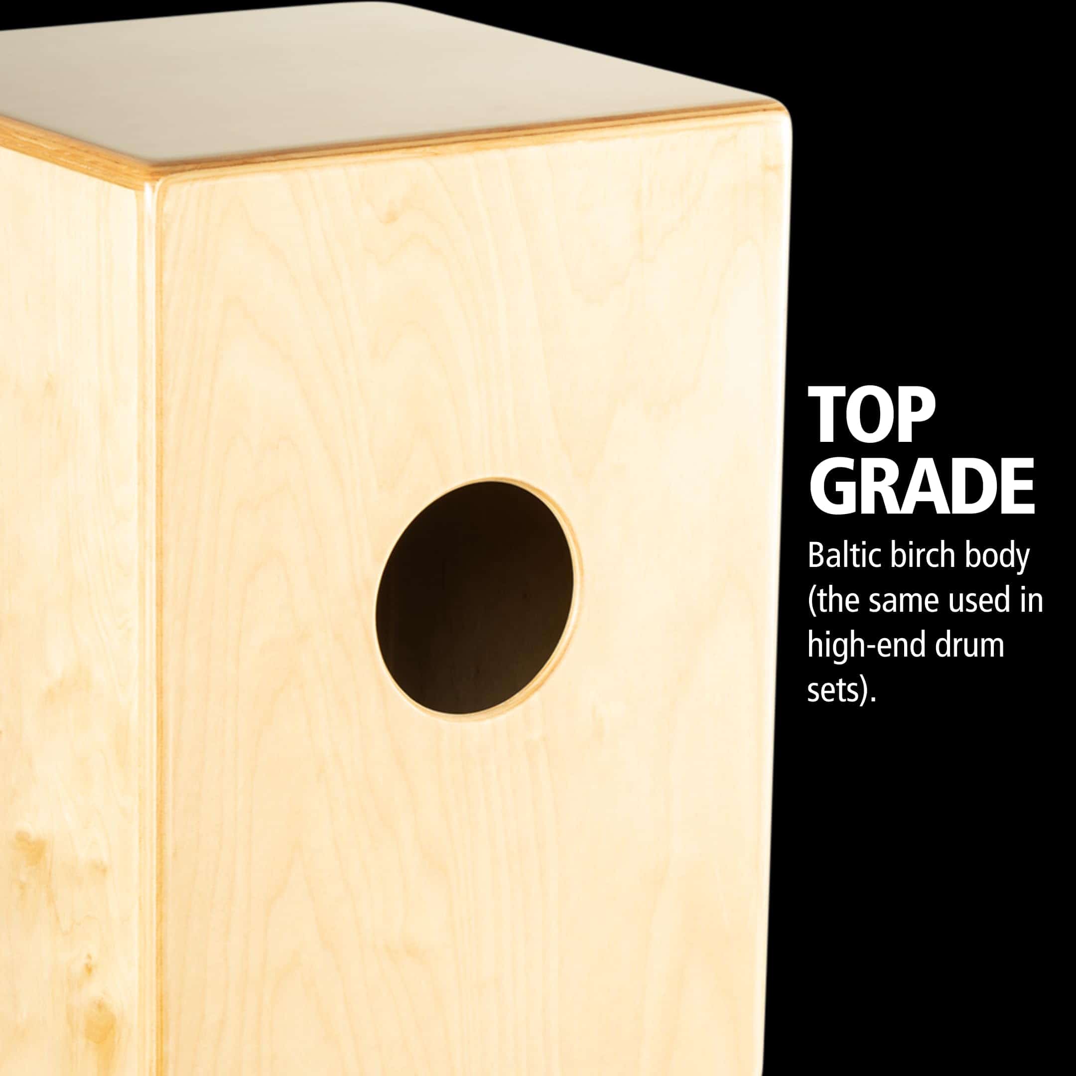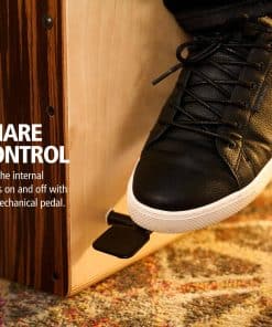 1. ACTIVA Y DESACTIVA LAS CUERDAS: tienes la opción de tocar con un tono de sordina nítido o sin sordina para un efecto de conga/bongó hueco; simplemente presiona el pedal en el lateral para cambiar el sonido. 2. POR QUÉ ES IMPORTANTE: obtienes dos instrumentos con sonidos diferentes en una sola unidad y puedes ajustar instantáneamente su sonido para que encaje en el ambiente o la canción. 3. CÓMO FUNCIONA: el pedal mecánico está unido a dos juegos internos de cuerdas de sordina de acero enrollado; empujar el pedal hacia adelante coloca las sordinas contra la superficie de juego, y hacia atrás las aleja (un pequeño empujón del pedal es todo lo que necesitas). 4. IMPULSANDO EL SONIDO: hecho con un cuerpo de abedul báltico y placa frontal de ébano para producir un tono de madera rico, nítido y completo; la placa frontal está formada para coincidir 1 a 1 con el cuerpo para un sonido y sensación excepcionales. 5. UN DETALLE IMPORTANTE: este es un cajón de tamaño extra grande construido para bajos más profundos que llenan la habitación; la superficie de juego extra ancha tiene un punto dulce de bajo más grande para darle más pegada. 6. POR LOS NÚMEROS: mide 13 1/4″ de ancho x 19 3/4″ de alto x 13 1/2″ de profundidad y pesa 13 libras; su gran tamaño tiene suficiente volumen para cualquier habitación, y está hecho para durar con una estructura sólida que soporta a adultos. 7. DÓNDE TOCAR: junto a guitarras en conciertos acústicos, con música de adoración, en el estudio, o en jams al aire libre; cuatro pies de silicona sólida mantienen el cajón estable, evitan arañazos y eliminan vibraciones en cualquier superficie. 8. LA IMAGEN COMPLETA: Meinl es un fabricante de instrumentos musicales de propiedad familiar y marca establecida en 1951 en Alemania; nuestros diseñadores expertos alemanes tienen relaciones profundas con nuestros constructores para asegurarse de que recibes la más alta calidad absoluta