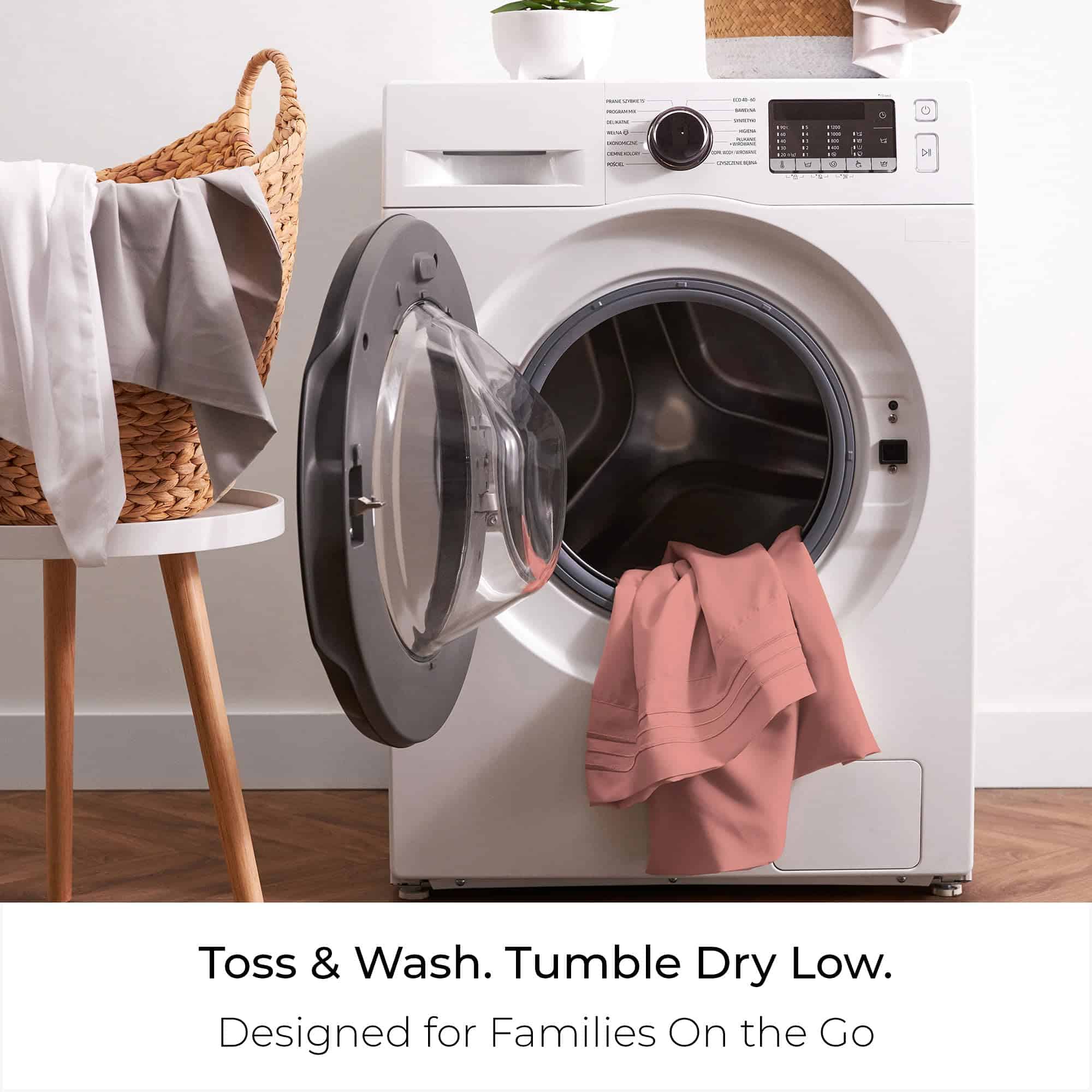 3. Cuidado Sencillo y Durabilidad Duradera – Lavar a máquina en frío, secar en ciclo suave – estas sábanas resisten manchas, encogimientos, decoloración, arrugas y formación de bolitas. De secado rápido y fácil de mantener, son perfectas para hogares ocupados con niños, mascotas y la vida diaria.