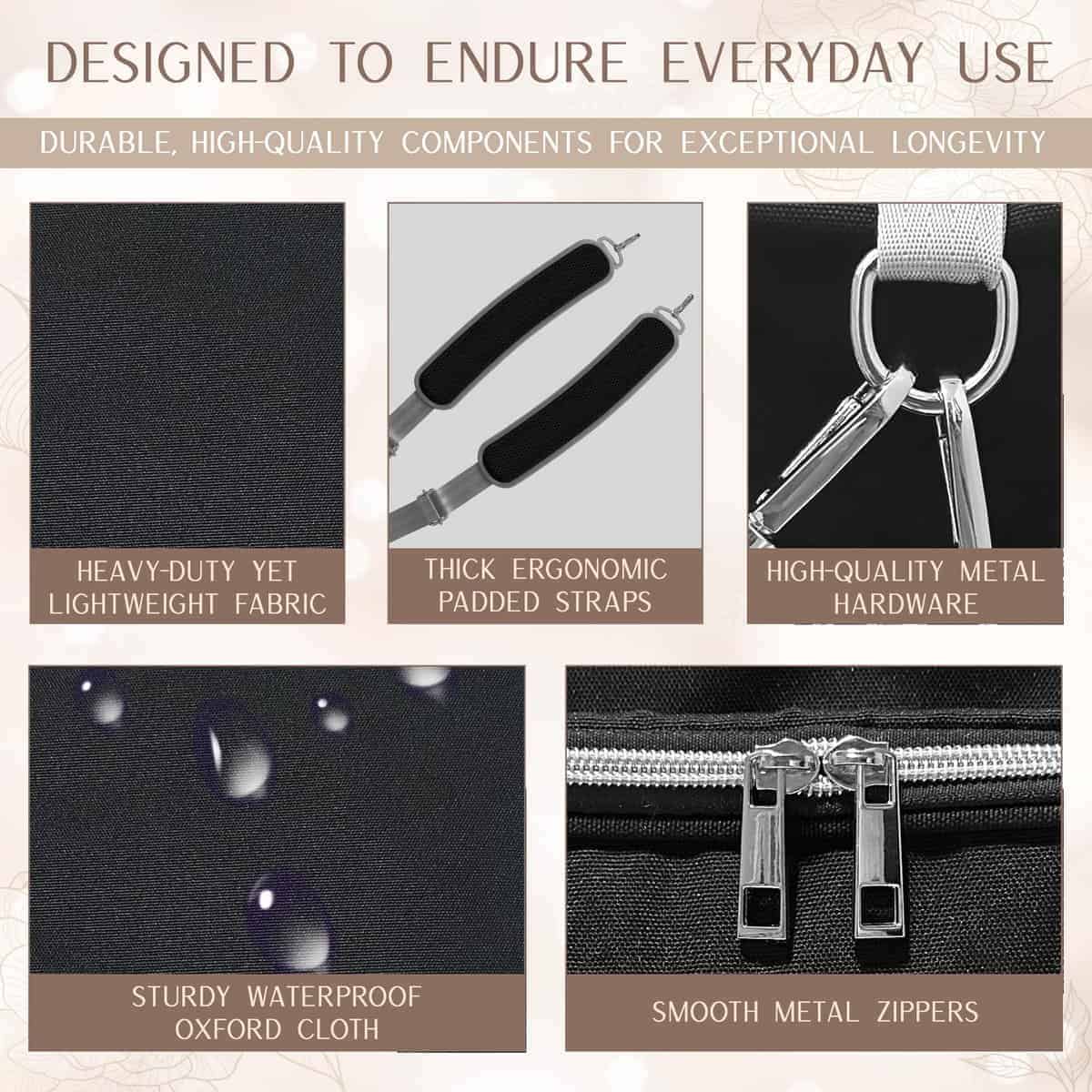 3. Fabricado para durar. Hecho de tela oxford impermeable premium, este bolso para pañales ofrece una construcción duradera y una longevidad excepcional. La tela resistente al desgarro, las costuras reforzadas y las cremalleras de metal de alta resistencia resistirán el uso diario, los viajes frecuentes y el desgaste de la vida como padre. El forro interior impermeable asegura que los derrames en el interior se puedan limpiar fácilmente, mientras que la tela exterior resistente a la suciedad garantiza un mantenimiento fácil, manteniendo tu bolso impecable durante años.