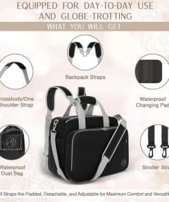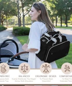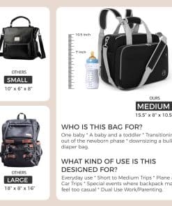 4. Tu bolso de pañales para viajar. Perfecto para todas tus aventuras familiares, este bolso para pañales cuenta con numerosos bolsillos y amplios compartimentos lo suficientemente grandes para una computadora portátil. Ideal para uso diario, viajes cortos a medianos, viajes en avión y en coche, y balanceando el trabajo y la crianza, se adapta perfectamente a los asientos de avión, haciéndolo adecuado para viajes en avión como un artículo personal. Ofrece una organización excepcional tanto para tus elementos esenciales como para los de tu bebé, siendo una solución compacta para viajar con un bebé.