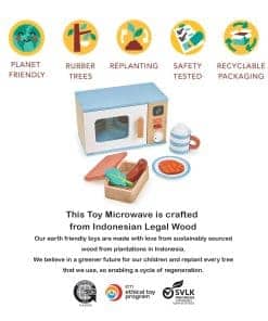 Este set de juguetes de madera de Mentari Toys es una forma divertida y educativa para que los niños exploren el mundo de la cocina de una manera segura y sostenible. Con su microondas de madera realista y sus accesorios de comida simulada, los pequeños chefs pueden desarrollar habilidades sociales y de comunicación, así como estimular su creatividad y destreza manual. Hecho con madera de árbol de caucho sostenible y pintado con pinturas no tóxicas, este set es amigable con el medio ambiente y seguro para los niños. Cumple con los estándares de seguridad más altos y es una adición perfecta a cualquier colección de juguetes para niños de 3 años en adelante.