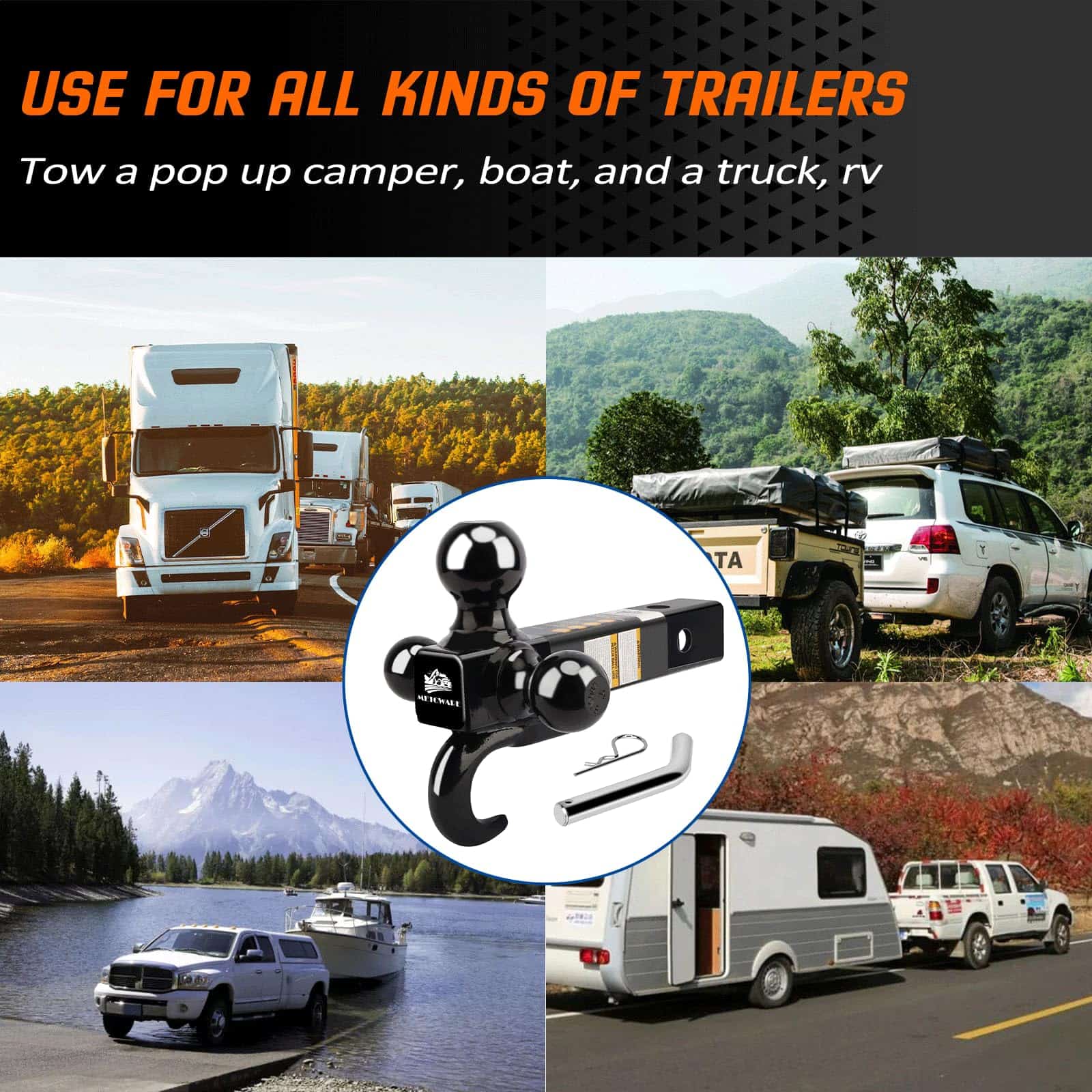 MEOTWARE Trailer Hitch Tri-Ball Mount with Hook – Bola de