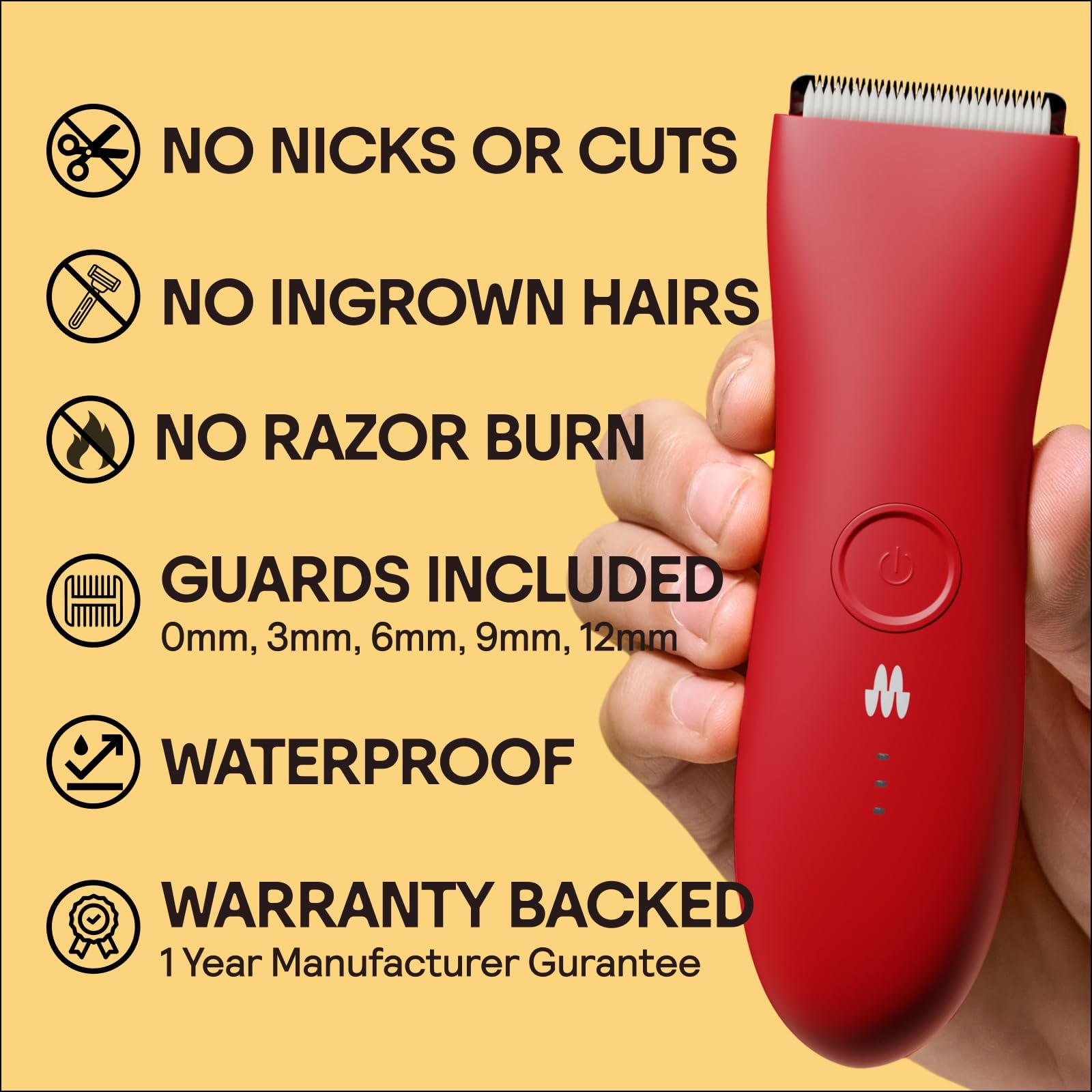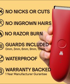 1. NO QUEMADURAS. NO BULTOS. NO TONTERÍAS: Olvídate del miedo a los cortes. Nuestra cuchilla de cerámica corta justo encima de la piel, sin irritación, enrojecimiento, quemaduras de cuchilla ni vello enquistado. Es un camino libre de problemas desde la parte superior hasta debajo del cinturón.