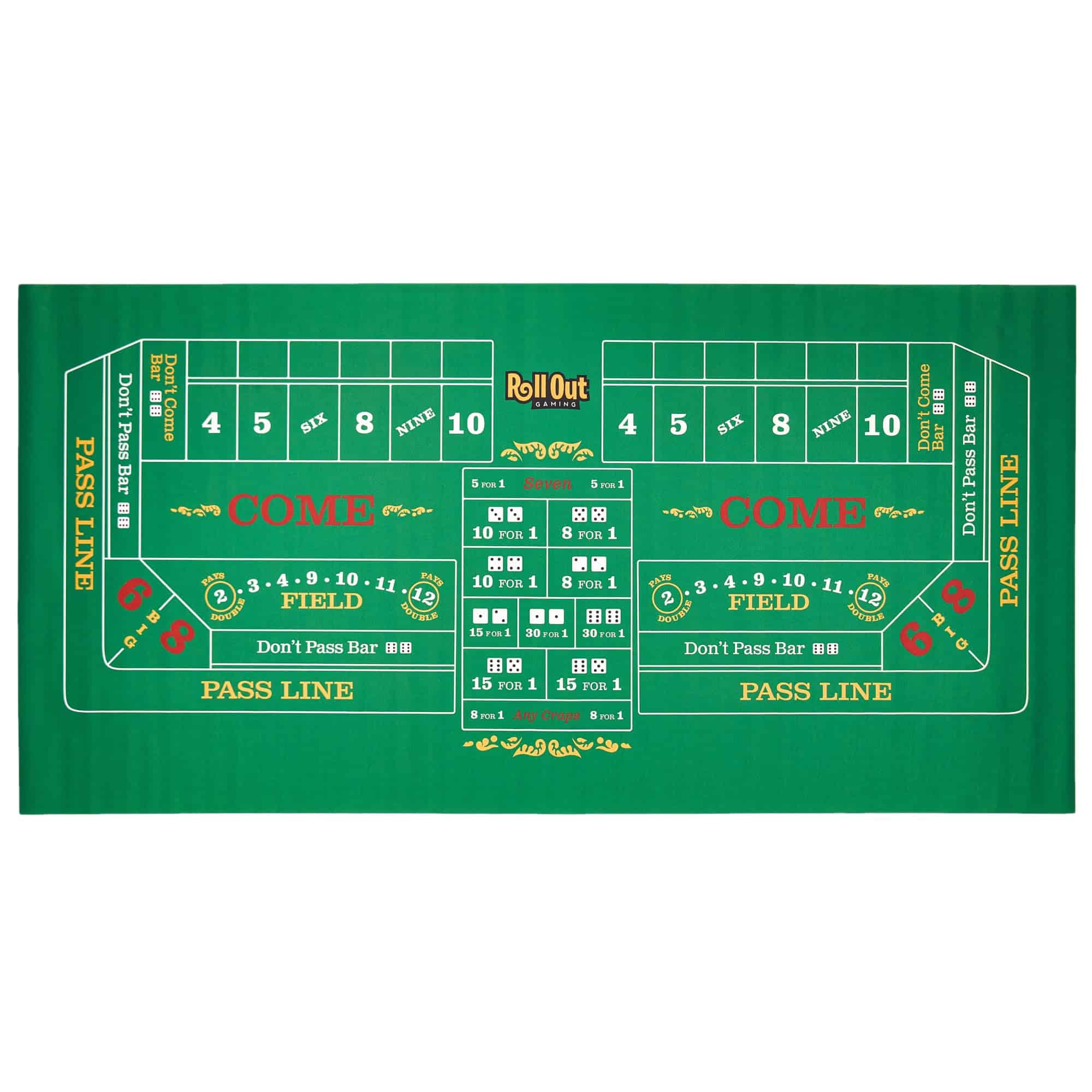 Un poco más sobre nuestras cubiertas Roll Out: además de nuestra cubierta estándar Roll Out para póker, ofrecemos una versión Dealer para los amantes de Texas Hold’em que cuenta con un área de juego impresa con 5 contornos de cartas y un área para el dealer especificado. Nuestra cubierta de blackjack presenta 7 áreas de apuestas, suficientes para 7 jugadores y 1 dealer, junto con reglas impresas estándar. Nuestra cubierta de ruleta es el diseño americano mucho más popular con doble cero. Nuestra disposición de craps en realidad está compuesta por dos disposiciones estándar para aumentar la capacidad de jugadores.