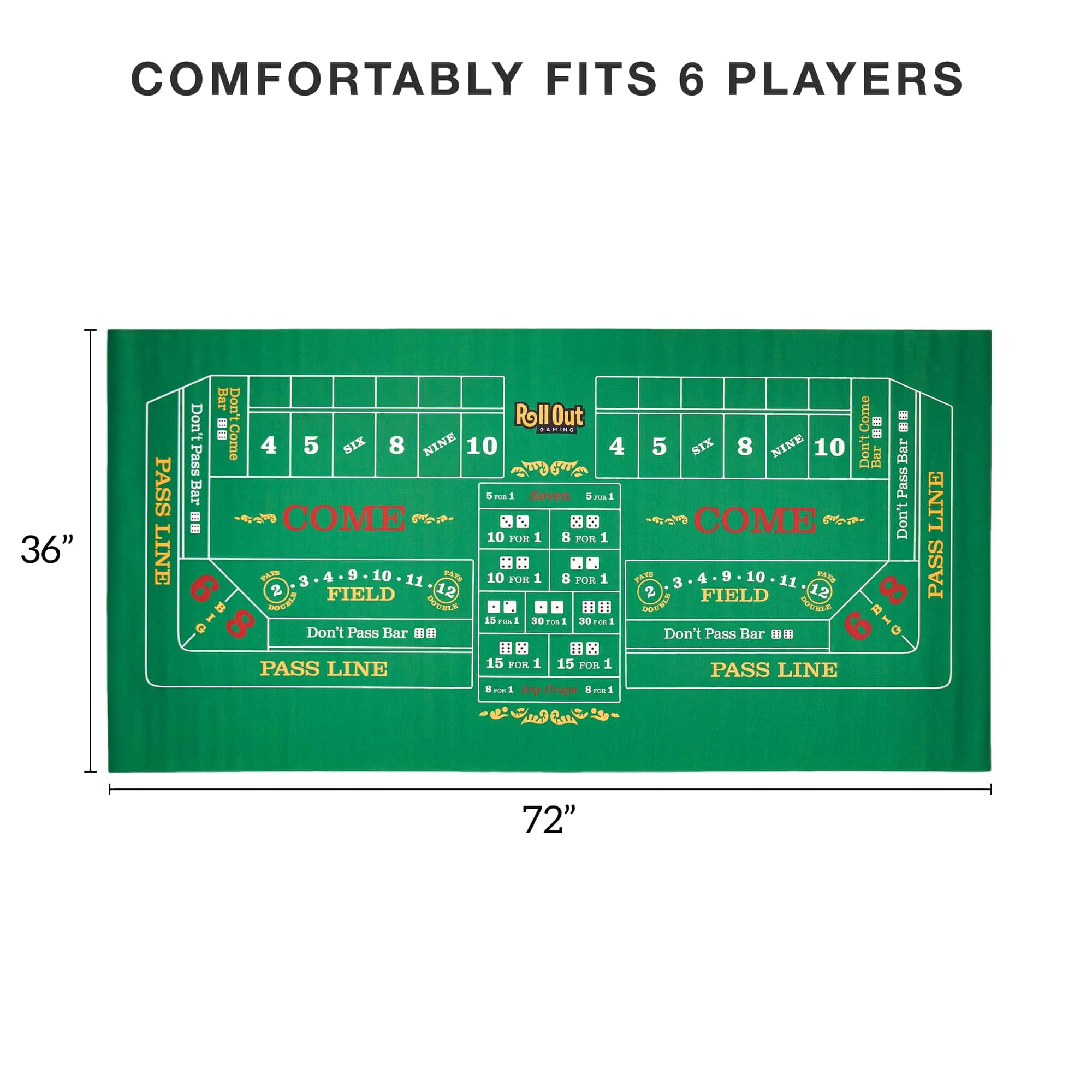 Con casi 6 pies de largo y 3 pies de ancho, la cubierta Roll Out es lo suficientemente amplia para que jueguen seis personas cómodamente, y cuando termina el juego, se enrolla a solo 3 pulgadas de diámetro. Guarda una en un armario, debajo de una cama, incluso en la cajuela de tu auto. El caucho duradero y resistente a las rasgaduras es fácilmente portátil, soporta los rigores del viaje y viene con un estuche de transporte gratuito para mayor comodidad. Si necesitas una mesa de juego, ya sea para póker, blackjack, ruleta o craps, solo despliégala.