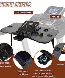 1. DISEÑO ERGONÓMICO: Nuestra bandeja de caminadora viene con un soporte para portátil a juego, y la altura de los 7 engranajes se puede ajustar. Puede ajustar la computadora al ángulo visual adecuado según sea necesario, sin tener que seguir bajando la cabeza, lo que puede aliviar eficazmente el dolor de cuello. 2. BANCO DE TRABAJO DEPORTIVO: Nuestra bandeja de caminadora se puede fijar de forma estable en la caminadora para servir como un escritorio. Puedes jugar o incluso realizar trabajos mientras corres. Nuestra nueva bandeja de caminadora cuenta con cajones, almohadillas antideslizantes, portavasos, ranuras para tablet, soporte móvil para bolígrafo y cuaderno de computadora, y puedes colocar computadoras, relojes, tazas, libros y otros artículos. 3. INSTALACIÓN SENCILLA: Utiliza correas ajustables de nailon para pasar por la ranura, fija firmemente la bandeja en el mango de la caminadora y luego coloca el soporte para portátil en la bandeja, y la instalación estará completa. El proceso de instalación es sencillo y rápido, y es firme y estable durante el uso. 4. ACCESORIOS Y DIMENSIONES: Tamaño: 35’L x 15’W, cada pieza incluye un escritorio rectangular, 2 correas ajustables de nailon, 1 almohadilla antideslizante, 1 cajón de plástico y 1 soporte para portátil ajustable y giratorio. 5. PROTECCIÓN DE BORDE DE MESA Y ANTIDESLIZANTE: Esta bandeja de caminadora tiene barras antideslizantes y almohadillas antideslizantes para evitar que los objetos de escritorio se caigan, con doble protección antideslizante; El borde de la mesa está sellado con goma, lo que no solo protege tu seguridad durante el ejercicio, sino que también protege el equipo de desgaste y arañazos.