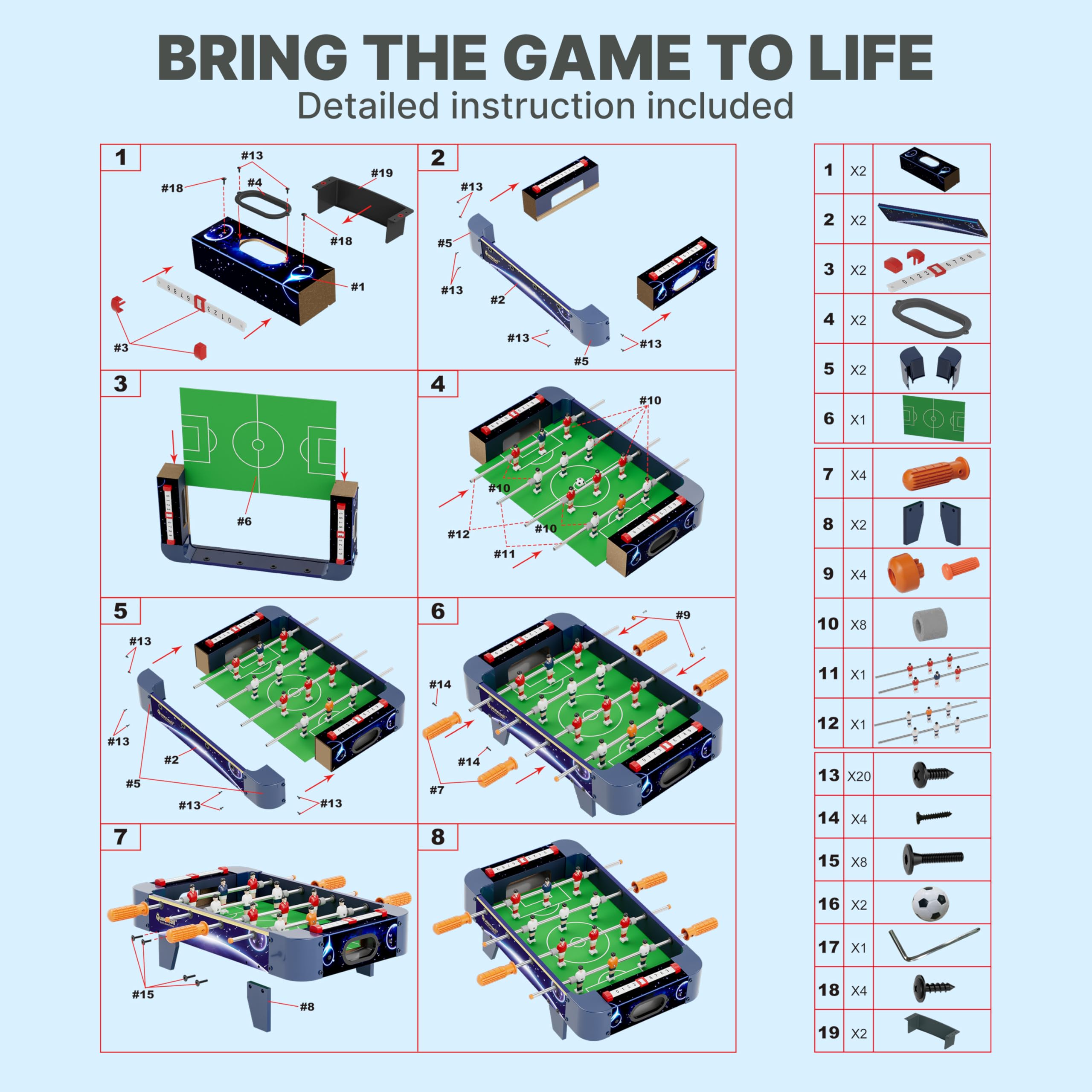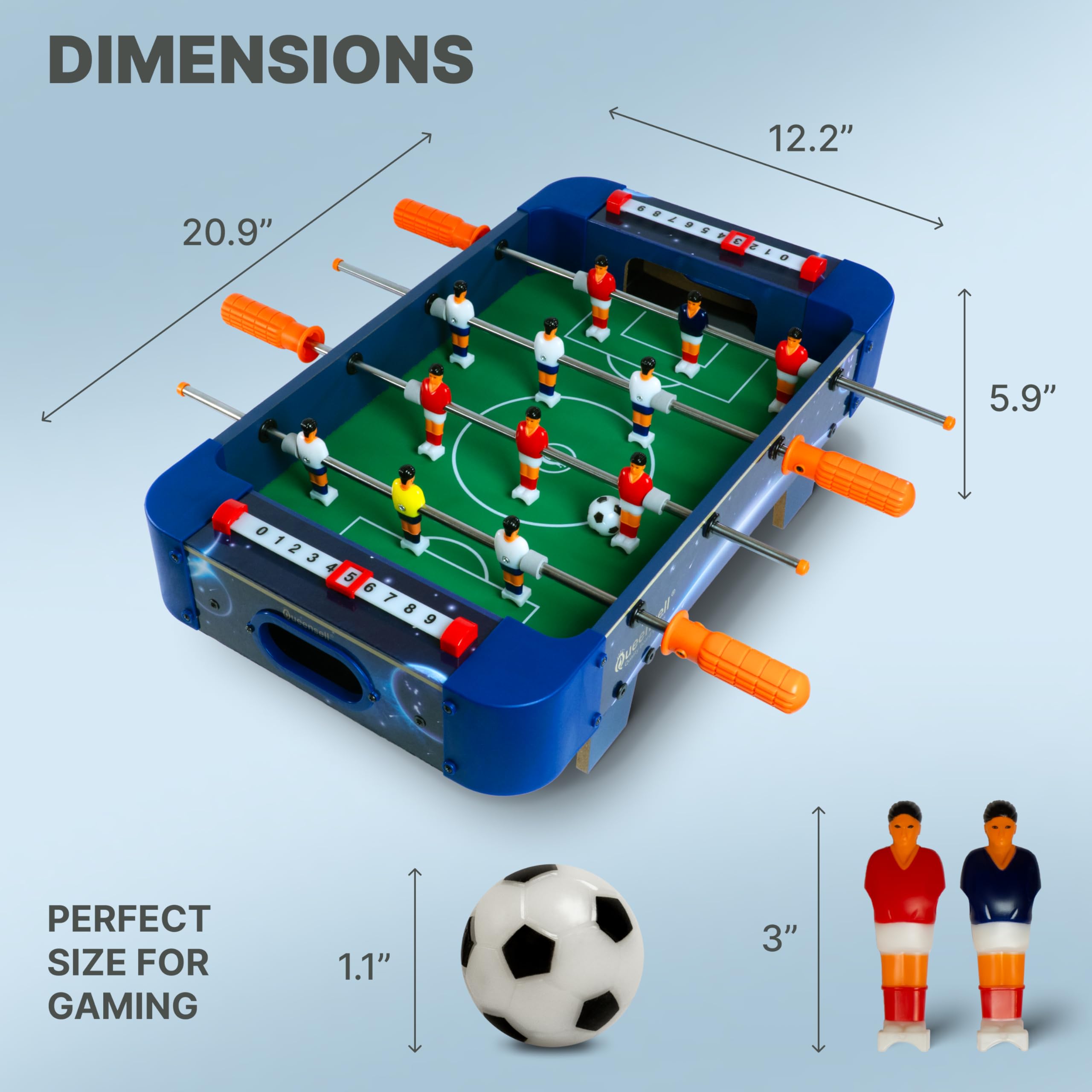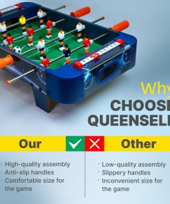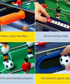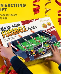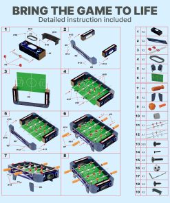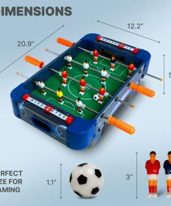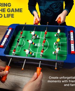Construida con materiales duraderos y resistentes, esta mini mesa de futbolito está diseñada para resistir partidos intensos y brindar diversión duradera. Su diseño compacto y portátil de 20.9×12.2×5.9 pulgadas la hace fácil de almacenar y perfecta para cualquier mesa o escritorio.