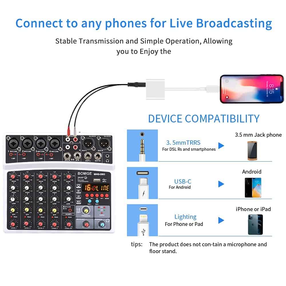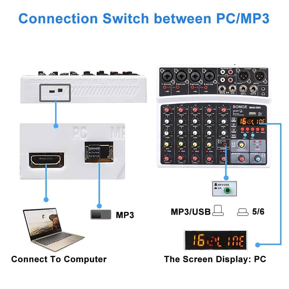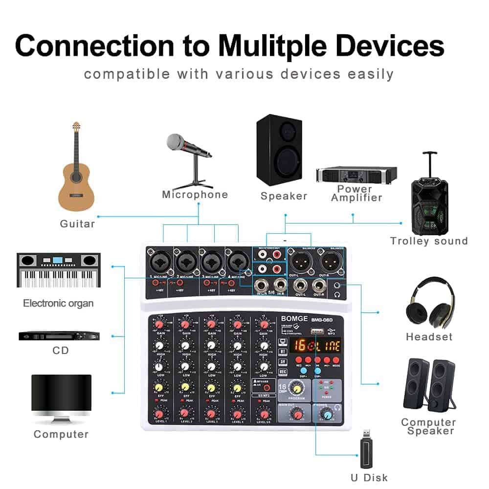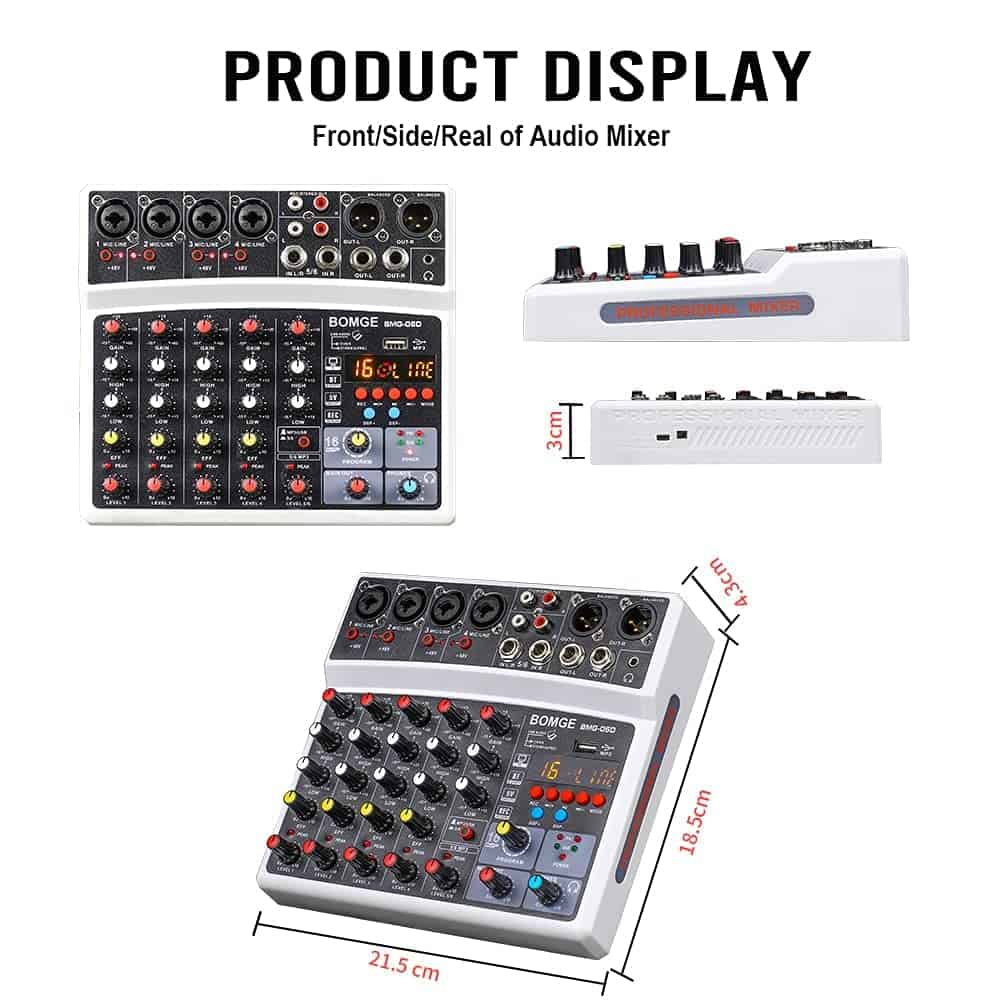 Mesa de Mezclas de Audio de 6 Canales BOMGE – Consola de