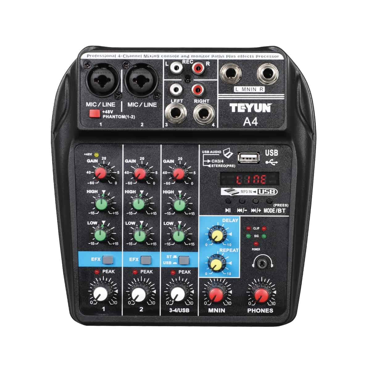 Mesa de Mezclas Profesional Portátil TEYUN de 4 Canales