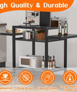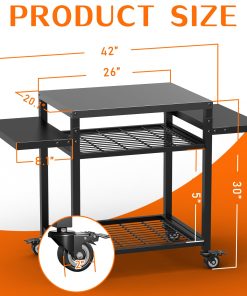 2. Carro de parrilla con tabla extensible: Tamaño de hasta 42″x 20″. Esta mesa de parrilla exterior cuenta con una tabla extensible para un 300% más de espacio de trabajo, perfecto para herramientas de parrilla e ingredientes. La mesa lateral se puede desmontar y colocar en el primer o segundo nivel, brindándole flexibilidad.