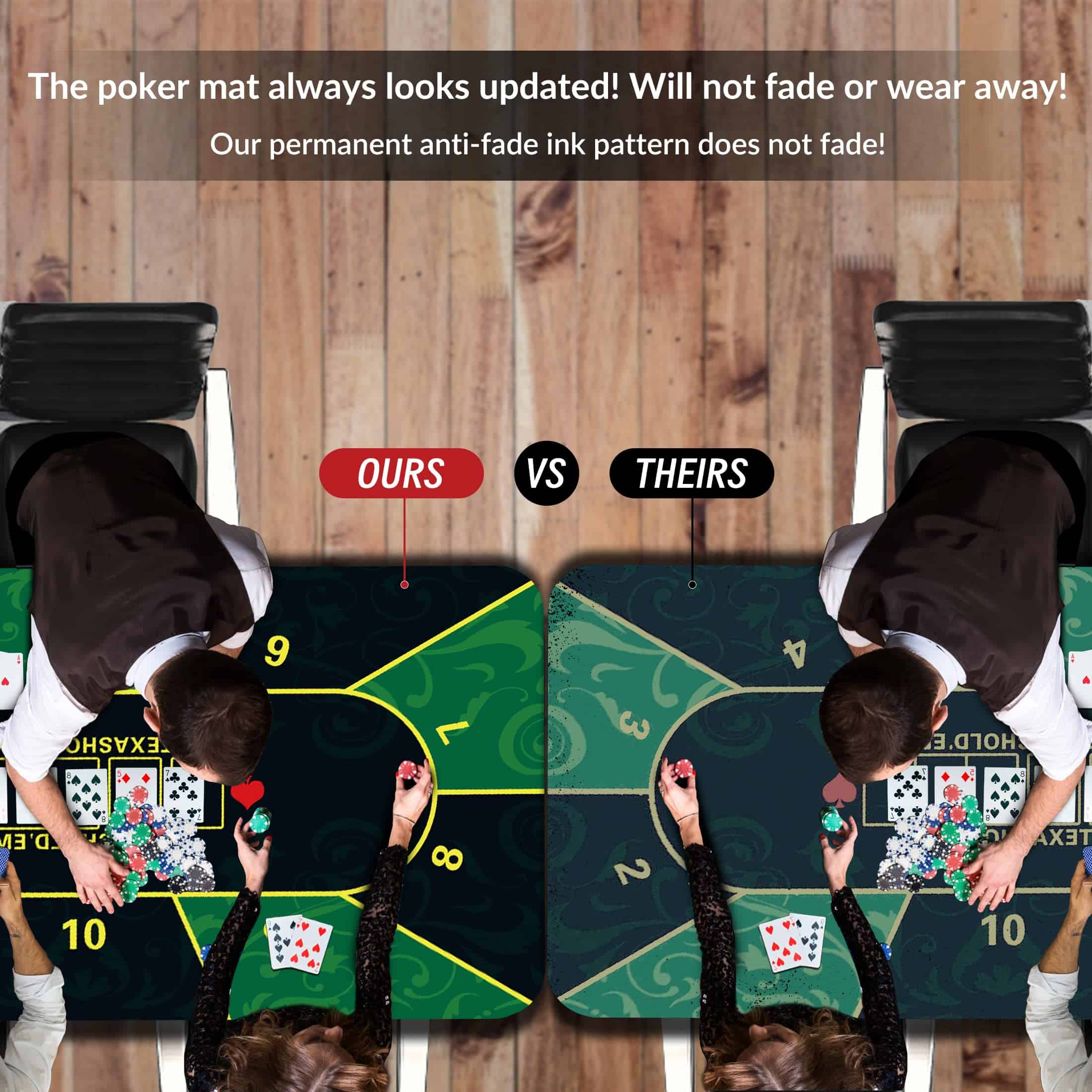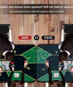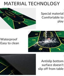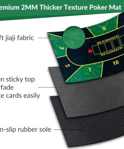 La mesa de póker nuveti con capacidad para 8-10 jugadores cuenta con colores llamativos que son perfectos para una fiesta temática de casino o una noche de juegos de cartas. Fabricada en goma de alta calidad, nuestro tapete resistirá largas horas de juego y será fácil de limpiar. No tendrás que preocuparte por derrames de líquidos, solo limpia la superficie con un paño húmedo. La base de goma antideslizante agarra firmemente el escritorio para proporcionar estabilidad durante el juego. El diseño resistente al agua evita que los líquidos derramados penetren en la mesa, facilitando su limpieza. La superficie ultra suave de la mesa de juegos proporciona una experiencia de juego sin resistencia para las cartas, además de proteger la mesa de arañazos y manchas. Con esta mesa de póker duradera, cualquier mesa se puede convertir en una mesa de juego profesional. ¡Disfruta de juegos de cartas con tus amigos durante horas de diversión sin fin! Esta mesa de póker es una gran adición a cualquier hogar.