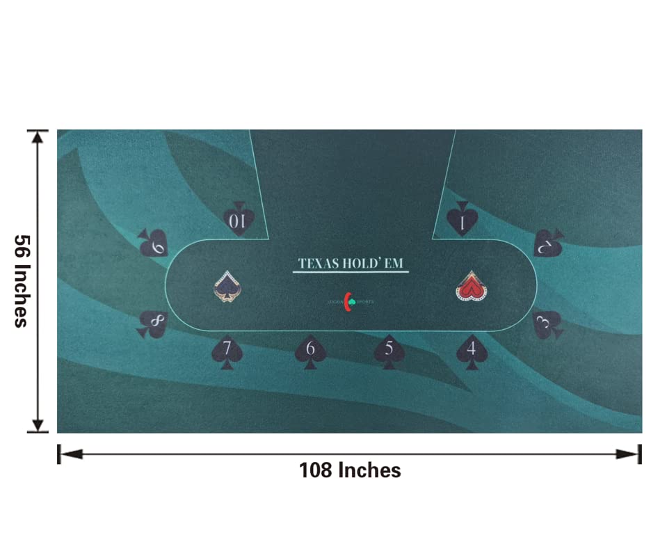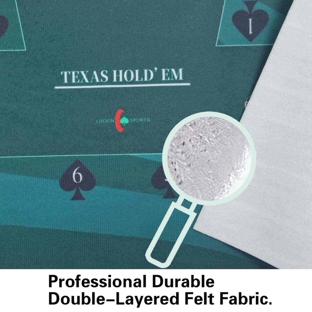 LUCKIN SPORTS Mesa de Poker y Juego Profesional de Texas Hold’em de 108 x 56 pulgadas, Para hasta Diez Jugadores. 100% Tela Duradera, Impermeable y Resistente a las Manchas, Lavable y Planchable.