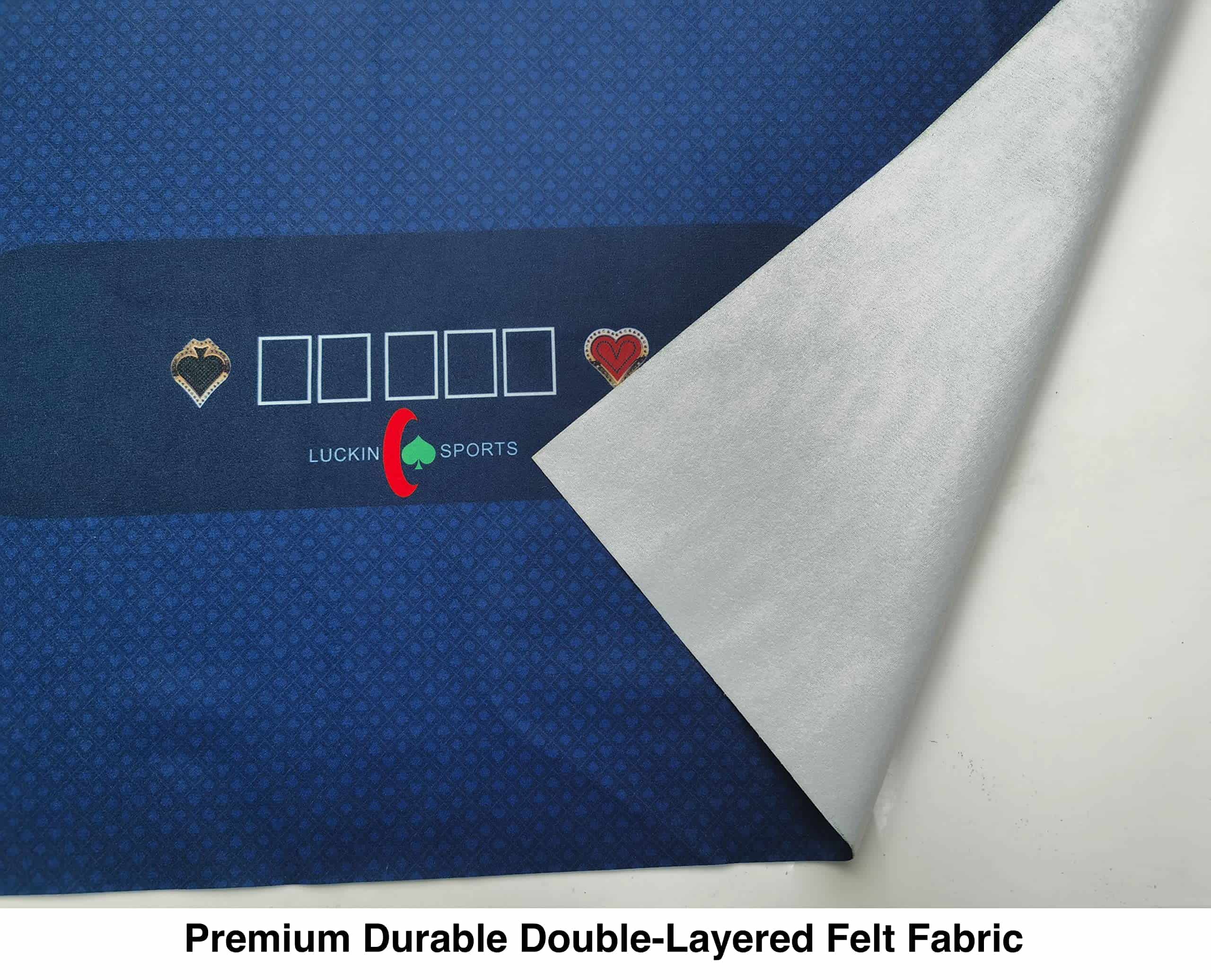 Mesa de póker y juego Texas Hold’em de LUCKIN SPORTS de 108 X 56 pulgadas para profesionales, Para hasta diez jugadores. Tela de fieltro 100% durable, resistente al agua y a las manchas, lavable y planchable. ¿Estás considerando construir una mesa de póker de alta calidad? ¿Planeando una divertida noche familiar de póker? ¿Organizando un emocionante torneo de póker? El mantel de póker de Luckin Sports es tu mejor elección. ¡Este mantel premium de tela de fieltro de doble capa te ofrecerá la experiencia real del casino!