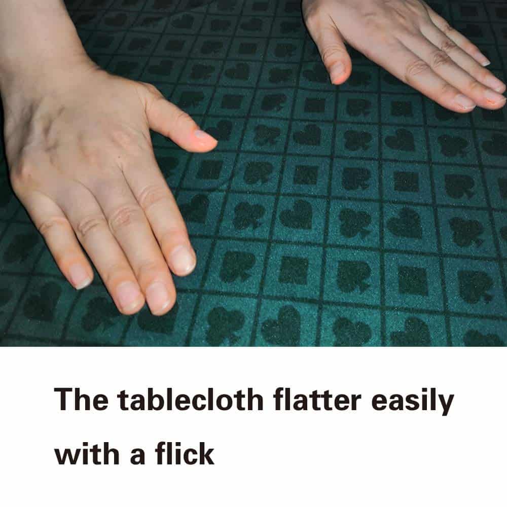 Mesa de póquer de 108×56 pulgadas con sección de tela de velocidad de dos tonos de BALIKEN en color verde. Este nuevo diseño cuenta con tejidos profesionales que no se doblan, ofreciendo una experiencia de casino auténtica. Ideal para la construcción de mesas de póquer. El material actualizado es 100% impermeable, lo que evita que las gotas de agua penetren fácilmente en la superficie de la tela. La impresión digital por sublimación proporciona superficies suaves y planas que no se deslizan una vez desplegadas. Fácil de limpiar agitándola o utilizando un paño. Protege tu mesa de salpicaduras mientras juegas y brinda tracción en superficies húmedas. Con una garantía de 12 meses, nos comprometemos a ofrecer productos duraderos y de alta calidad para el uso diario. Ante cualquier problema, por favor envía un correo electrónico a nuestro servicio amable para resolverlo.
