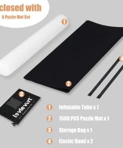 3. Bono – una cubierta contra el polvo y set de tapete de rompecabezas. Cuando detengas la misión del rompecabezas, aplica la cubierta a las piezas del rompecabezas para protegerlas contra el polvo, la humedad y tus traviesas mascotas. El set incluye un tapete de fieltro de 1500 piezas, 2 bandas elásticas, 1 tubo inflable, así como una bolsa de almacenamiento con cordón, para uso combinado con la mesa de rompecabezas o uso por separado.