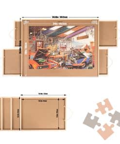 5. Tamaño del Producto – La superficie de la mesa mide 35.03 26.77 1.57 pulgadas, el cajón mide 16.93 12.20 0.63 pulgadas. Esta mesa de rompecabezas se aplica a la mayoría de los juegos de rompecabezas de hasta 1,500 piezas. Por favor, ten en cuenta que el paquete no incluye rompecabezas.