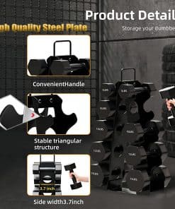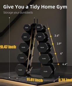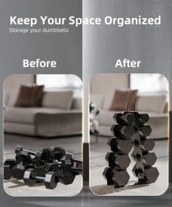 metaball Soporte de Pesas para Gimnasio en Casa: ¡Dile adiós a tropezar constantemente con tus mancuernas dispersas! Con este soporte de pesas en forma de A, tendrás un lugar organizado y accesible para tus pesas en todo momento. El diseño triangular estable y resistente te brinda la seguridad de que tus mancuernas se mantendrán en su lugar sin tambalearse. Además, gracias a su tamaño compacto, puedes colocarlo en una esquina o junto a un sofá para aprovechar al máximo tu espacio en casa. Equipado con un mango mejorado, el soporte de mancuernas es mucho más fácil de mover y transportar, lo que facilita realizar ejercicio tras ejercicio sin interrupciones. ¡No pierdas más tiempo buscando tus mancuernas! Este soporte de pesas en forma de A es la solución ideal para mantener tu gimnasio en casa ordenado y seguro. ¡Compra ahora y disfruta de una experiencia de ejercicio sin complicaciones!