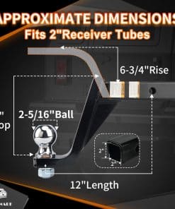 La barra de remolque viene con una bola de remolque de 2-5/16 pulgadas preinstalada, lo que facilita el acoplamiento rápido de tu remolque. Además, se incluye un candado de remolque de 5/8 pulgadas para garantizar que tu vehículo y remolque permanezcan seguros en todo momento. La alta resistencia a la corrosión del acabado de pintura en polvo negro y del plateado cromado pulido de la bola de remolque garantiza una larga durabilidad y resistencia a las inclemencias del tiempo.