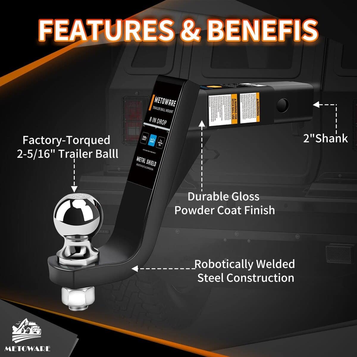 En resumen, METOWARE Barra de Remolque con Bola de Remolque de 2-5/16 Pulgadas te brinda la seguridad, versatilidad y confiabilidad que necesitas para tus necesidades de remolque. ¡Adquiere el tuyo hoy y viaja con tranquilidad!