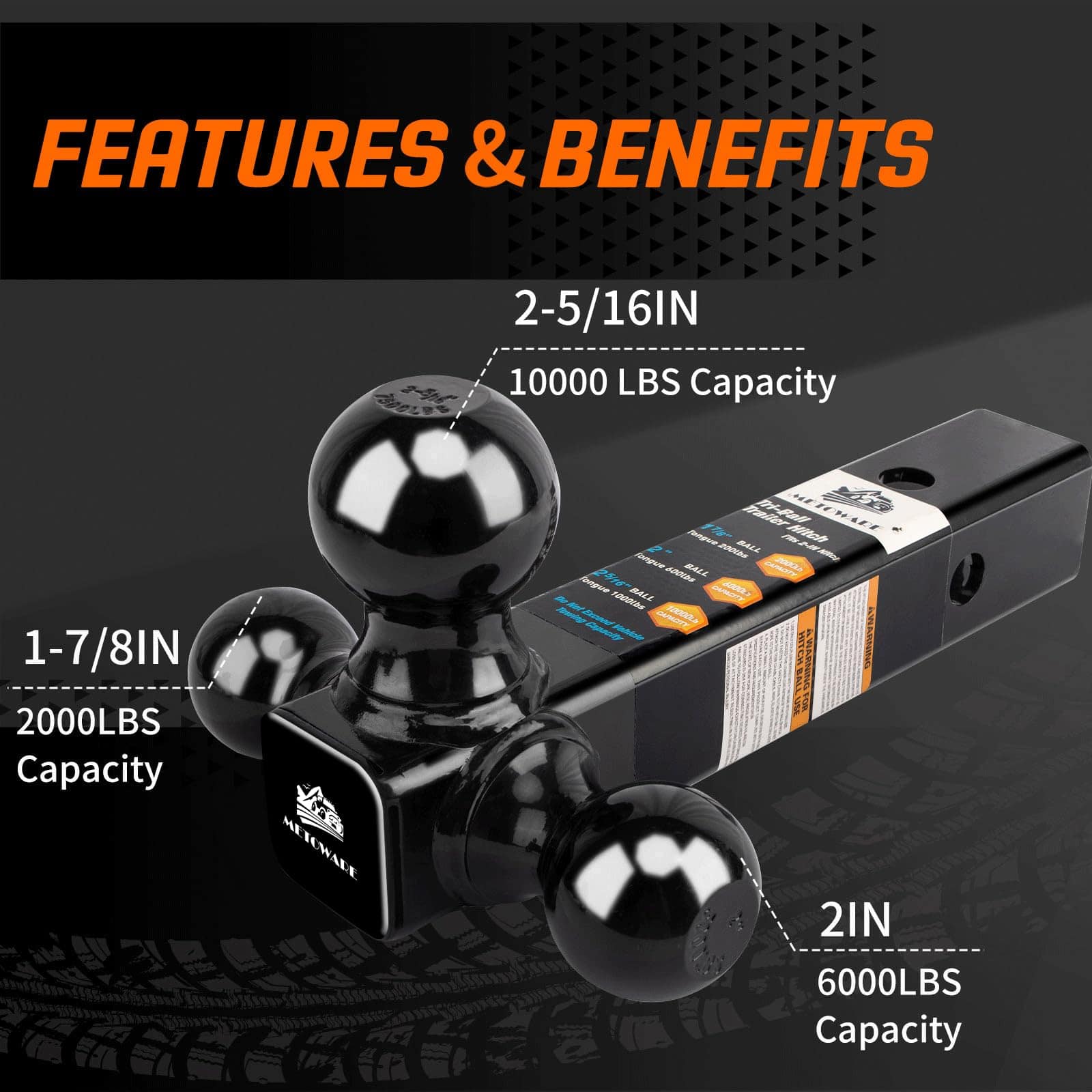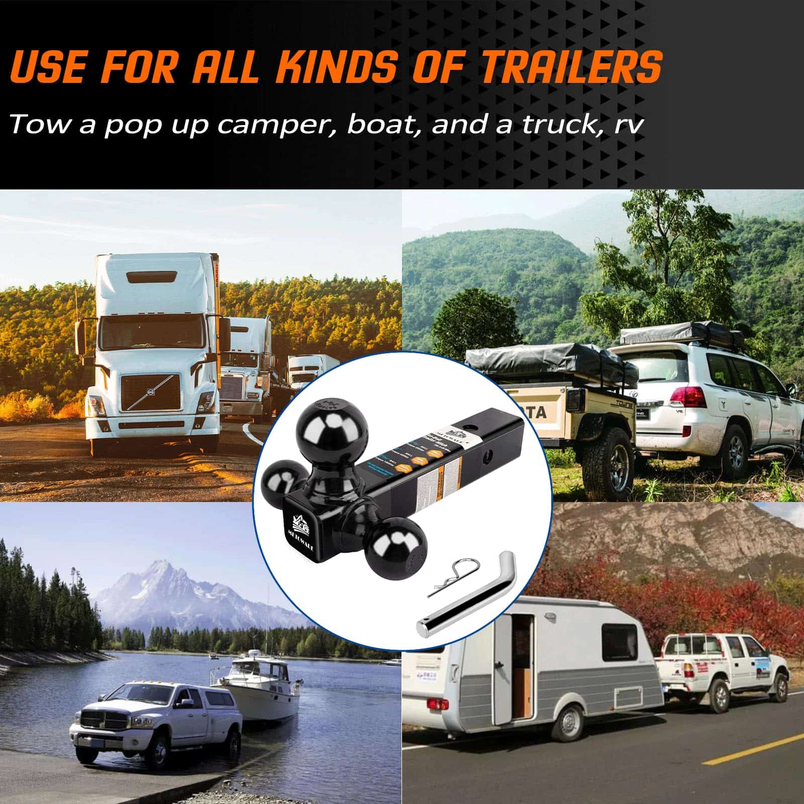 METOWARE Enganche para Remolque Tri Ball Mount con Pasador
