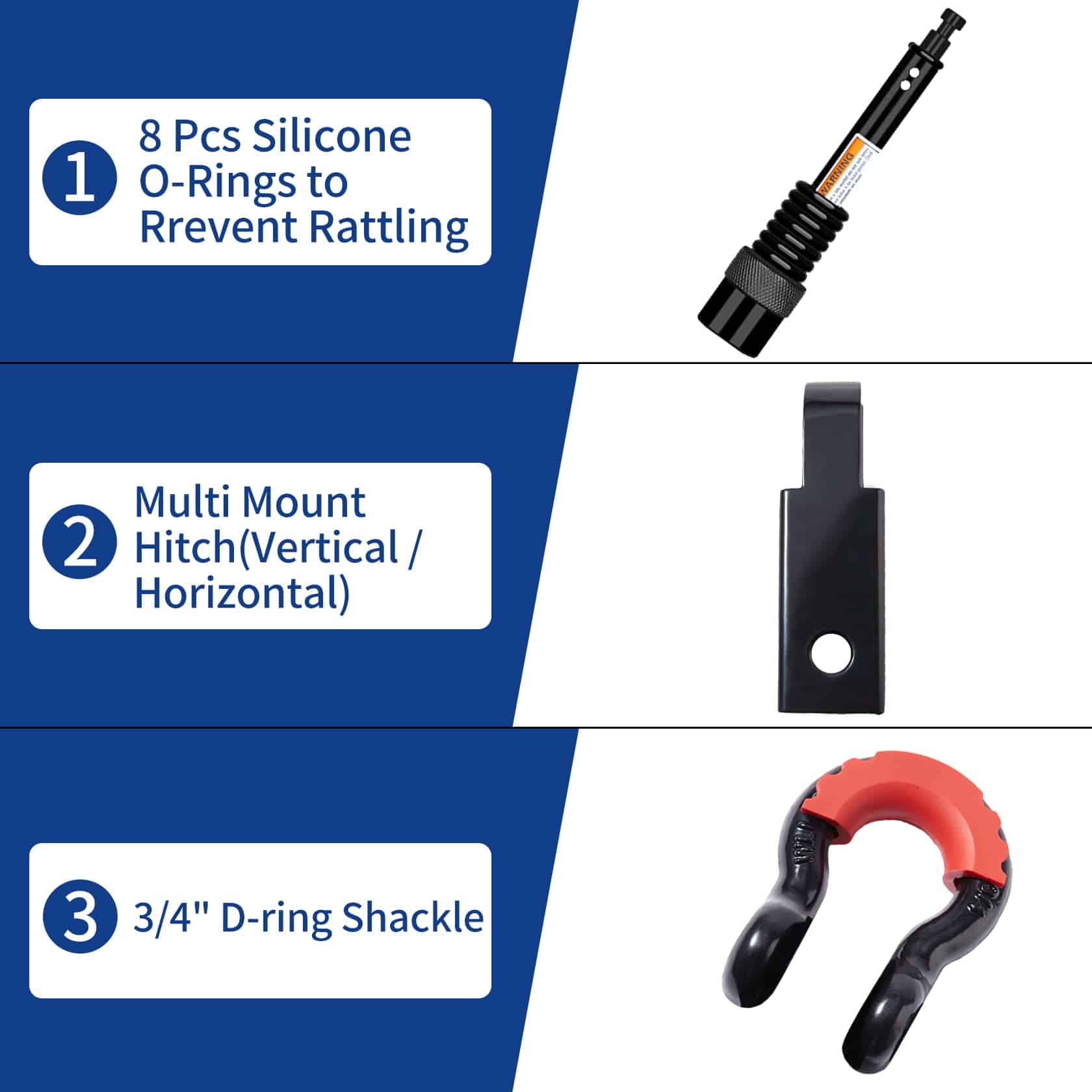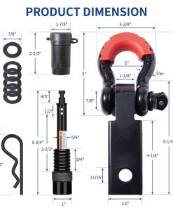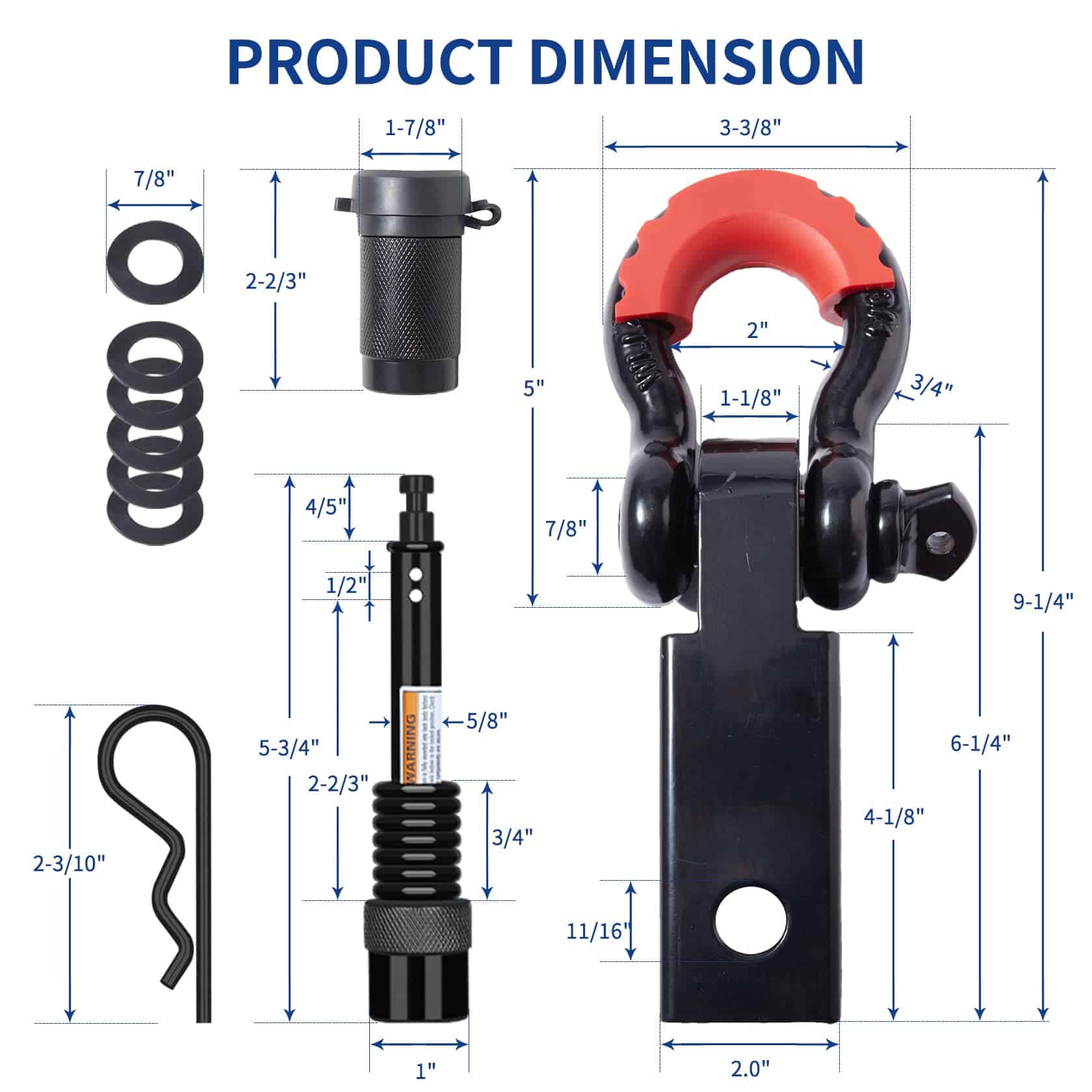 METOWARE Shackle Hitch Receiver 2″ with 3/4″ D Ring Shackle