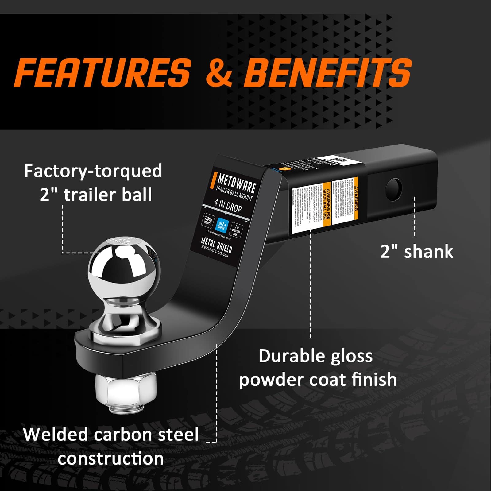 METOWARE Soporte de Enganche para Remolque con Bola de 2