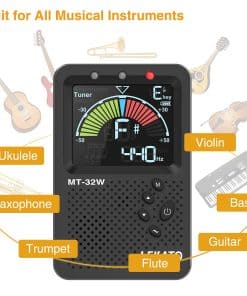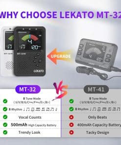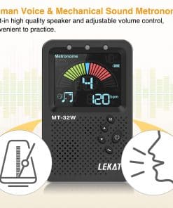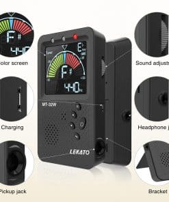 El metrónomo afinador LEKATO con pantalla LCD a color grande para leer fácilmente, indicador LED. Volumen ajustable, altavoz HD, método de detección de micrófono y toma de entrada, salida de auriculares con volumen ajustable y toma de auriculares que permite practicar en tu entorno preferido. Patas plegables – fácil de transportar.
