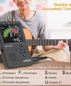 El metrónomo afinador lekato combina un Afinador, un Metrónomo y un Generador de Tonos, todo en un dispositivo de tamaño de bolsillo. Puede ser utilizado para tus conciertos o prácticas. Diseñado para principiantes y profesionales, con un diseño fuerte y duradero, este afinador fue construido para durar.