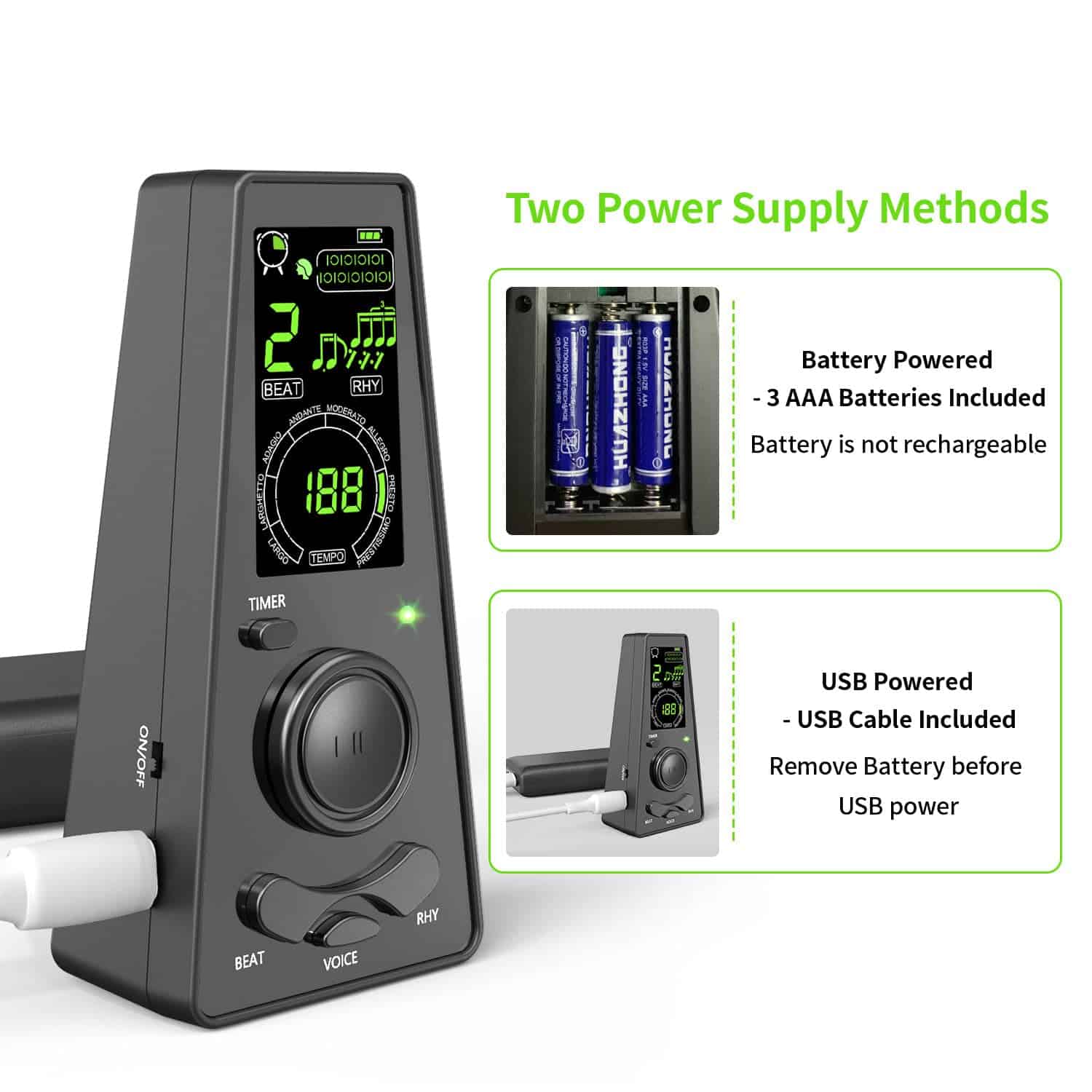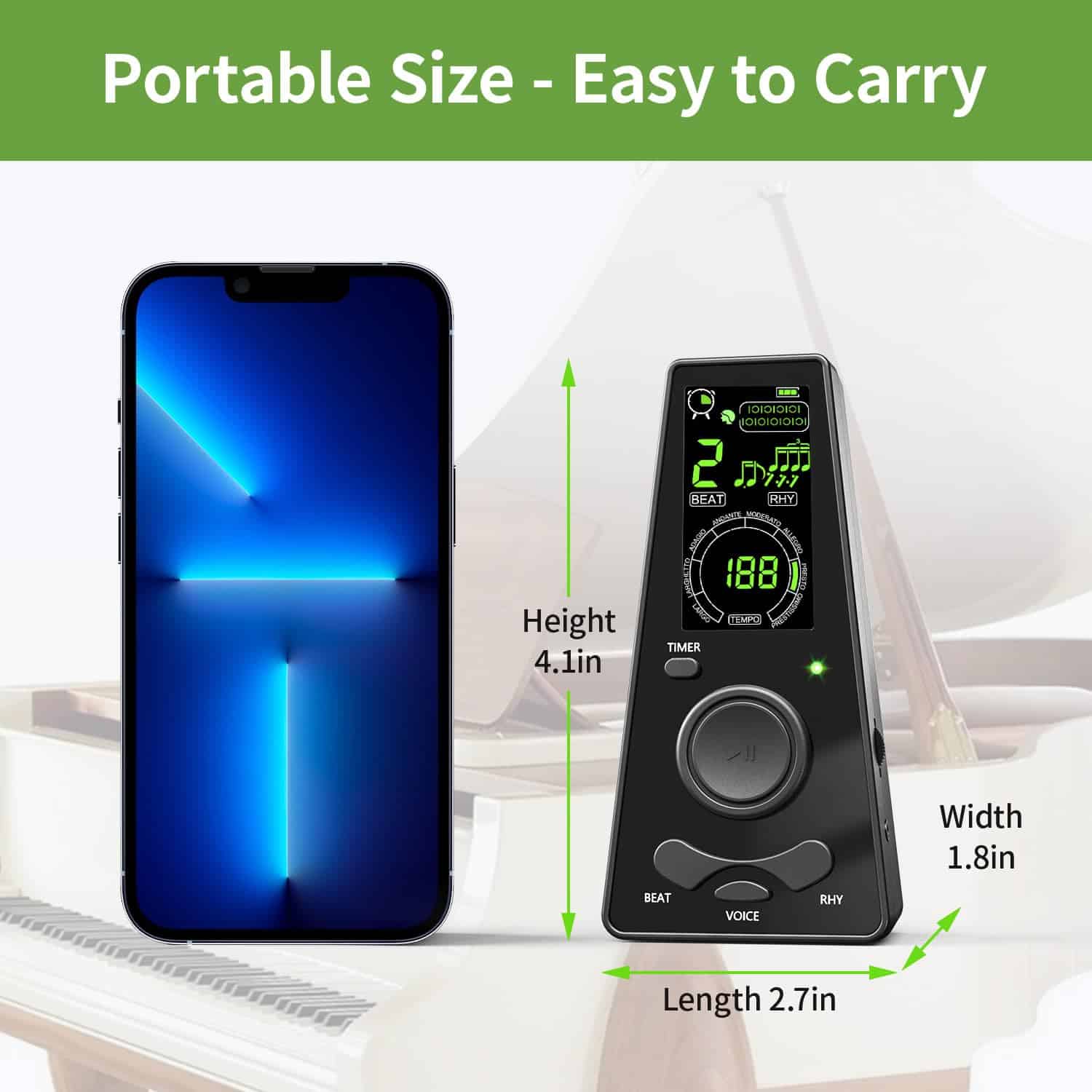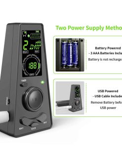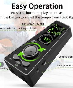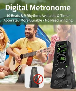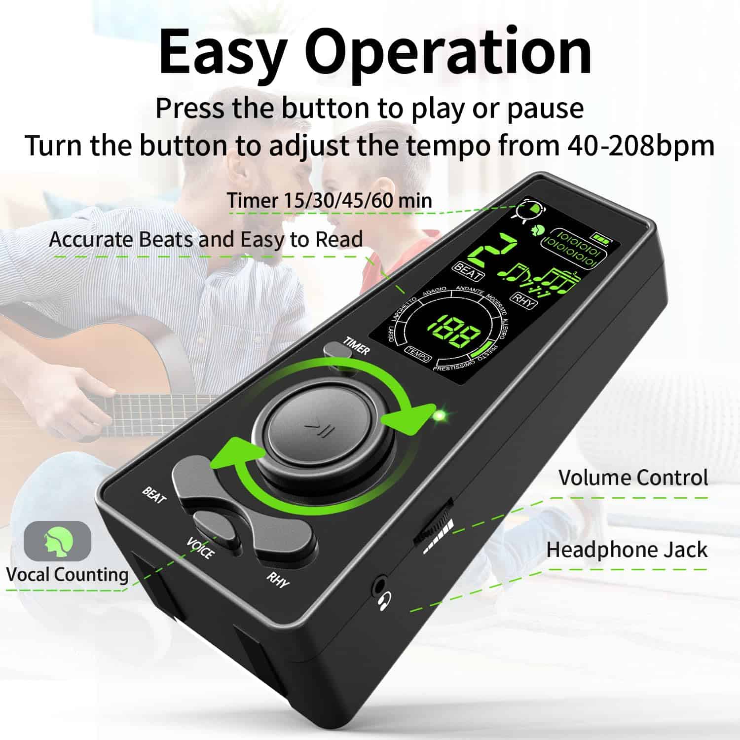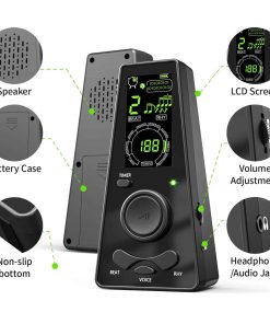 1. Metrónomo digital con un amplio rango de 40-208 Beats Por Minuto, tempo de toque y varios ritmos y patrones de compás, este metrónomo mejorará tu sincronización en una variedad de estilos musicales.