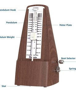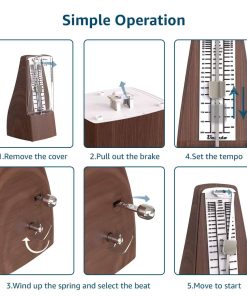 INCREÍBLES CARACTERÍSTICAS: Click audible y campanilla para mantener el ritmo mientras lees la partitura; Mecanismo de cuerda para producir pulsos métricos, no requiere batería; Rango de tempo: 40-208 bpm; Selección de tiempo: 0, 2, 3, 4, 6.