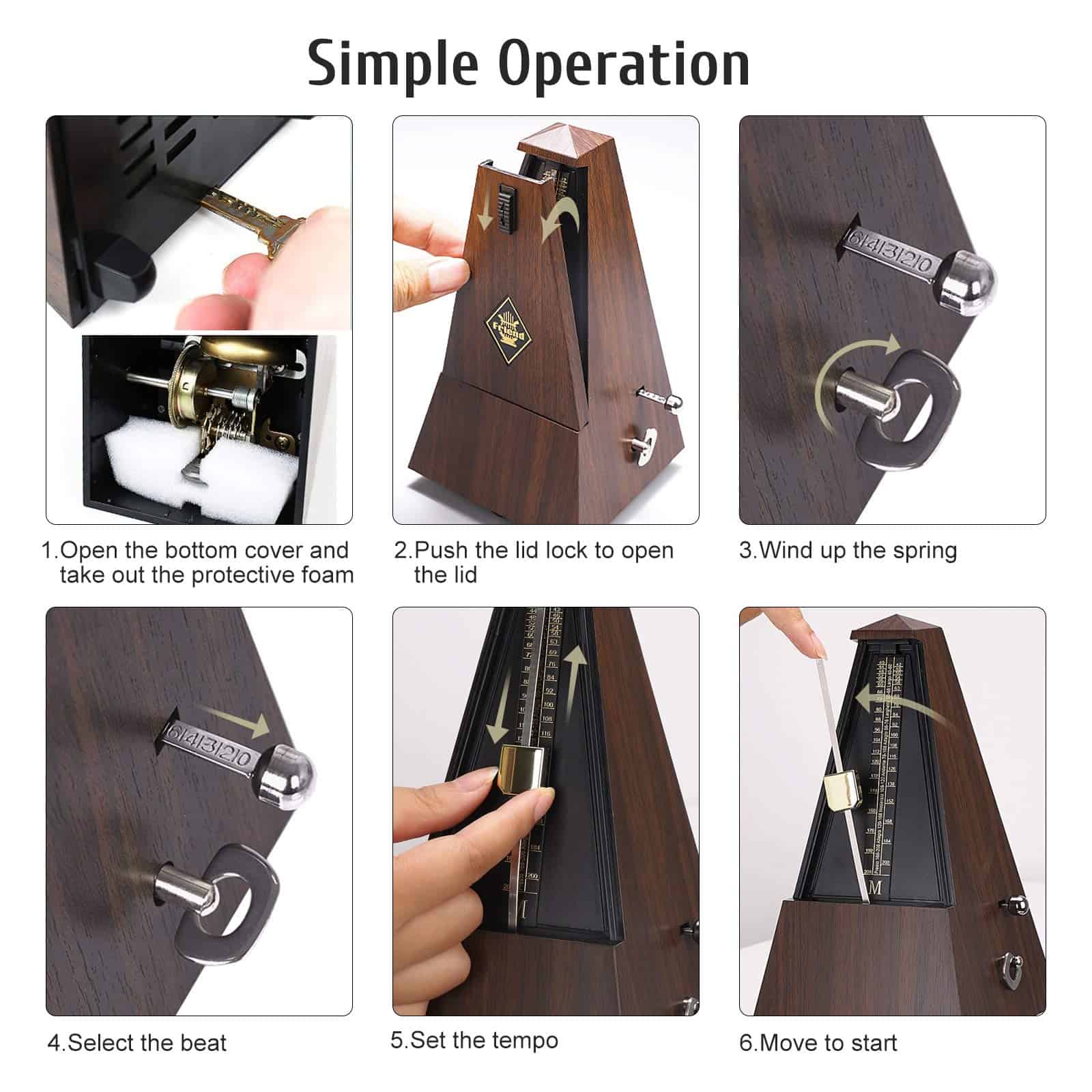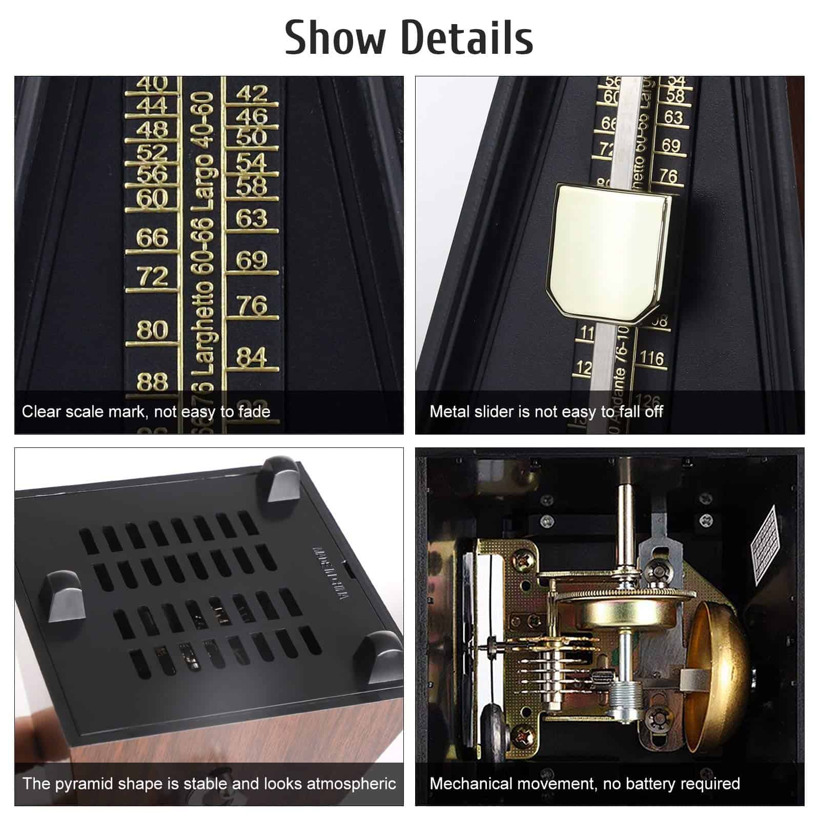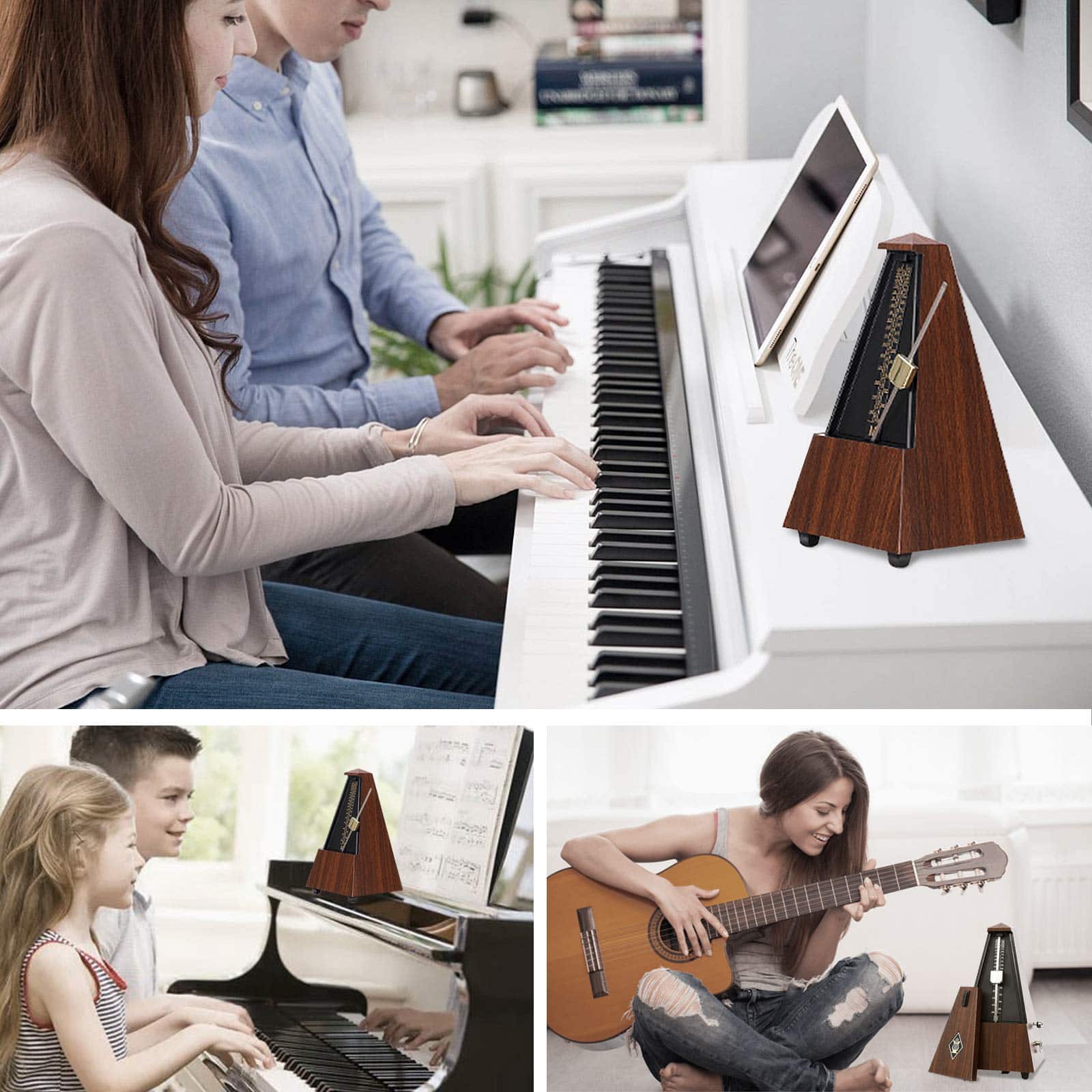 CARACTERÍSTICAS INCREÍBLES: Clic y campana audibles para mantener el ritmo mientras lees la partitura; el mecanismo de cuerda produce pulsos métricos, no requiere pilas.
