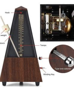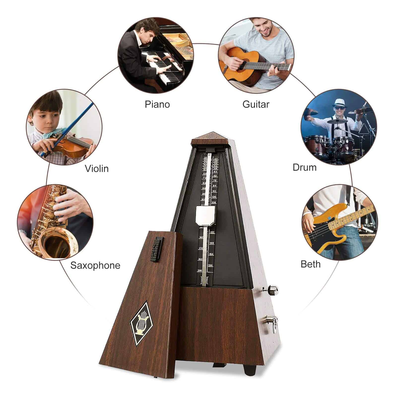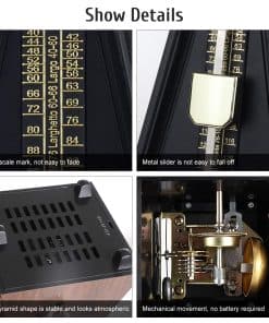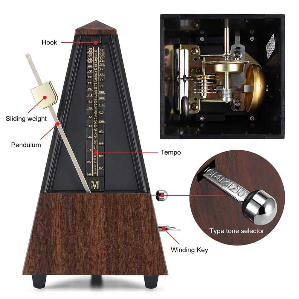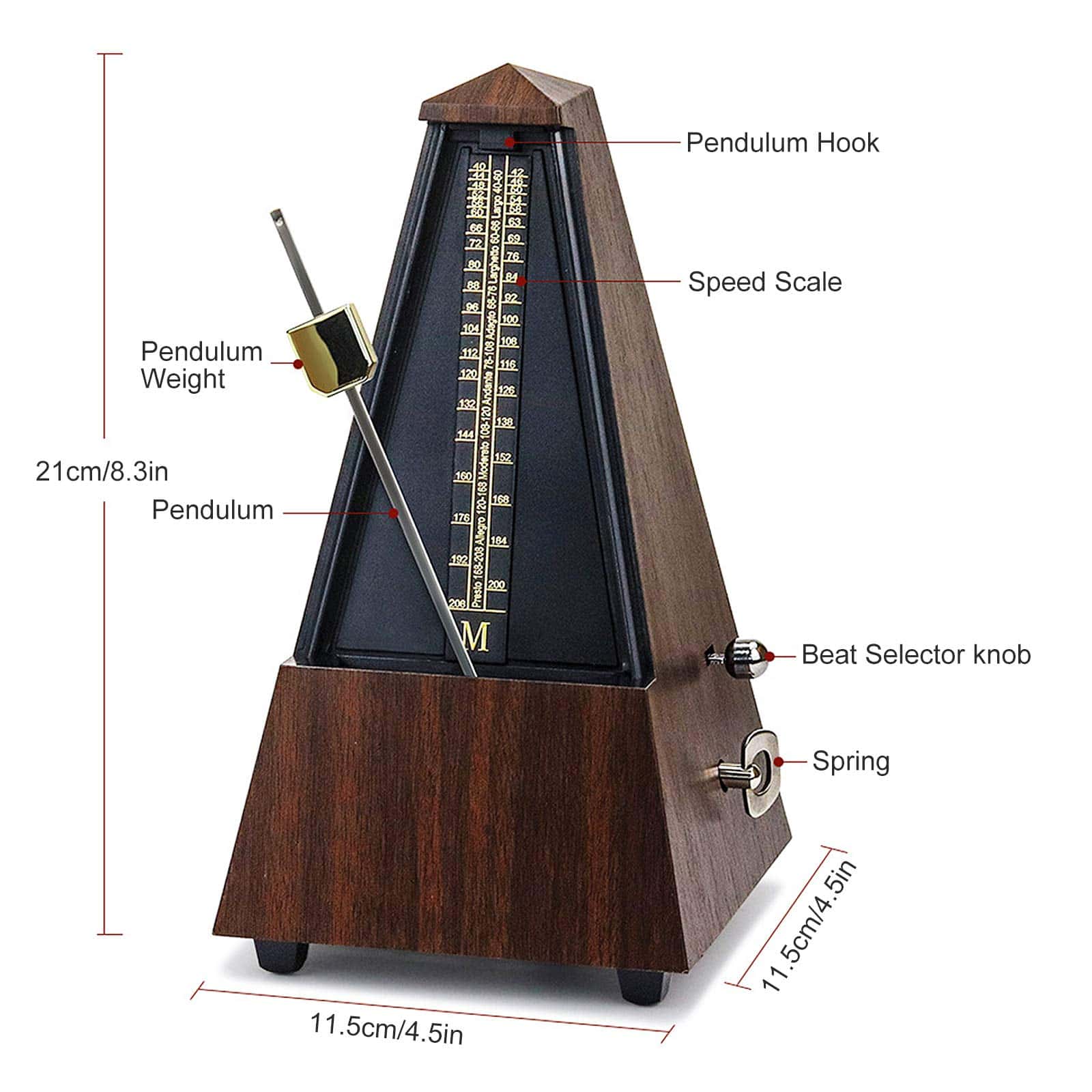 CARACTERÍSTICAS INCREÍBLES: Clic y campana audibles para mantener el ritmo mientras lees la partitura; el mecanismo de cuerda produce pulsos métricos, no requiere pilas.