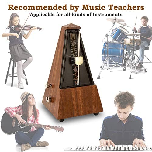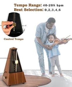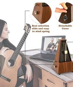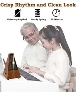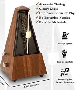 Nuestra misión: En nombre de nuestro equipo, estamos emocionados de trabajar contigo para ayudarte a convertirte en un músico exitoso. Nuestros metrónomos te ayudarán a desarrollar ritmo, tocar con precisión y aumentar tu conciencia musical. Convertirse en un mejor músico es difícil. Muchas personas simplemente no tienen los recursos o el conocimiento necesario para lograrlo. Creemos sinceramente que a través de una combinación de trabajo duro, deseo y los recursos adecuados, puedes lograr tu sueño de convertirte en un músico exitoso. Para ayudarte, proporcionamos un metrónomo de alta calidad y elegante que incluso los niños pueden usar fácilmente. La ajustabilidad del ritmo, tempo y alta tolerancia al tempo te mantiene en el camino correcto para tocar tu música correctamente, especialmente cuando se vuelve técnicamente difícil. Un solo viento promedio dura 18 minutos, garantizándote más tiempo para practicar y menos frustración…