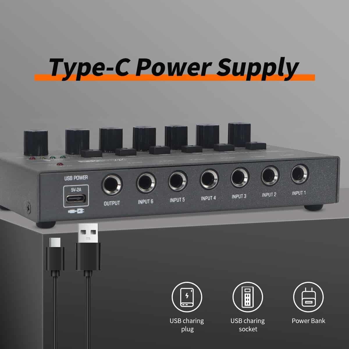El mezclador de audio Horse es la solución perfecta para aquellos que buscan una manera fácil de mezclar múltiples fuentes de sonido en un solo lugar. Con 6 canales de entrada independientes, cada uno con su propio control de volumen, este mezclador le permite mezclar sonidos de guitarra, micrófono, bajo y teclado digital con facilidad.