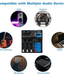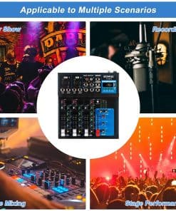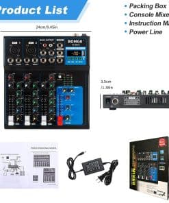 Este mezclador cuenta con 4/7 canales, 1 entrada de micrófono XLR, 1/4 INSERT y entradas de micrófono LINE en el canal 1/2. Las entradas INSERT permiten mezclar audio de micrófono e instrumentos como guitarra/piano/teclado. Cuenta con todo tipo de archivos de sonido muy fáciles de transportar. Además, el mezclador no solo puede utilizar la conectividad bluetooth sino también a través de USB. La interfaz de audio USB controla fácilmente la PC/lector de memorias flash. Múltiples entradas XLR/1/4 combo de audio LINE/mic, entrada mono/estéreo de 1/4 (6.35mm) y salidas AUX/EFFECT de 1/4 pair. Cuando necesitas un control de tono sutil, nada es más útil que un EQ confiable. Todos los canales mono de la serie BOMGE M cuentan con un EQ de 3 bandas para un control preciso sobre tu sonido. El filtro de paso alto te permite eliminar ruidos no deseados de baja frecuencia para una mezcla más suave y limpia. Compatible con Bluetooth para transmitir audio sin problemas desde tu teléfono inteligente a tu sesión de DJ. Este mezclador de audio también te permite transmitir de forma inalámbrica canciones de música desde Pandora/Spotify. Adecuado para pequeñas presentaciones/bandas/conferencias/usos domésticos/cantos de karaoke/computadora, etc. Si el artículo no cumple con tus expectativas o tiene algún defecto, contáctanos; te reembolsaremos el monto total dentro de los primeros 30 días o te ayudaremos a reemplazarlo con un artículo nuevo. Si hay algún problema, no dudes en contactarnos, estaremos encantados de ayudarte y esforzarnos por brindar un buen servicio al cliente.