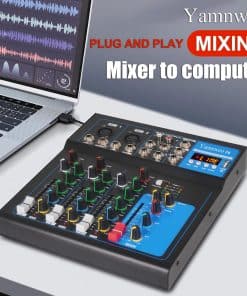 El mezclador de audio portátil Yamnweo GH4 es ideal para DJs, artistas de escenario, karaoke y aplicaciones de música en general. Con 4 canales de entrada, podrás crear mezclas impresionantes y controlar los efectos musicales con facilidad. Fabricado con un resistente chasis de acero, este mezclador es duradero y confiable para su uso en diversas situaciones. ¡Lleva tus presentaciones musicales al siguiente nivel con el mezclador portátil Yamnweo GH4!