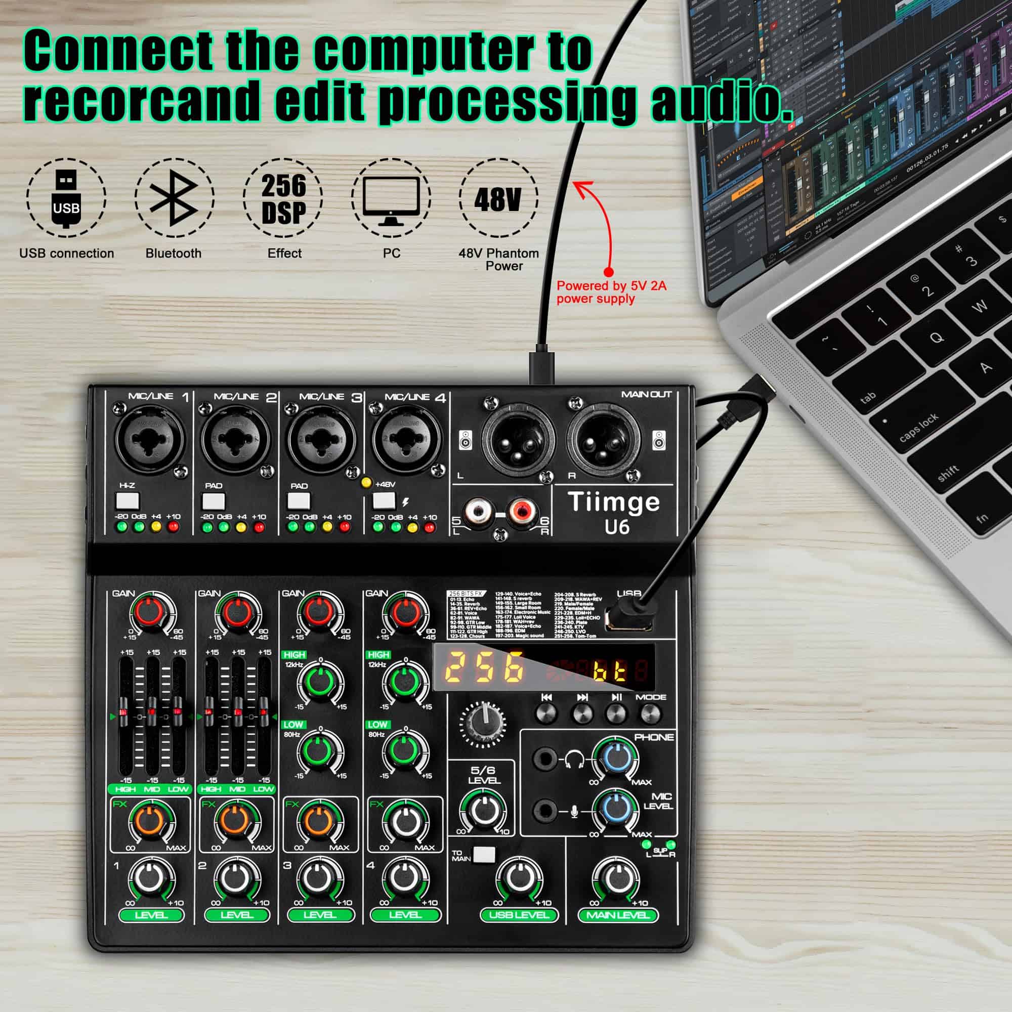 Mezclador de Audio Profesional de 6 Canales Tiimge con 256