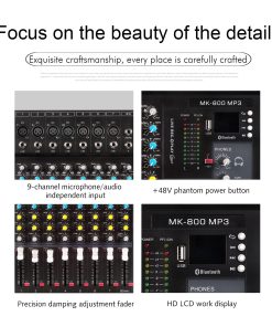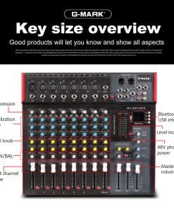 Mezclador de audio profesional G-MARK MK800MP3 de 8 canales