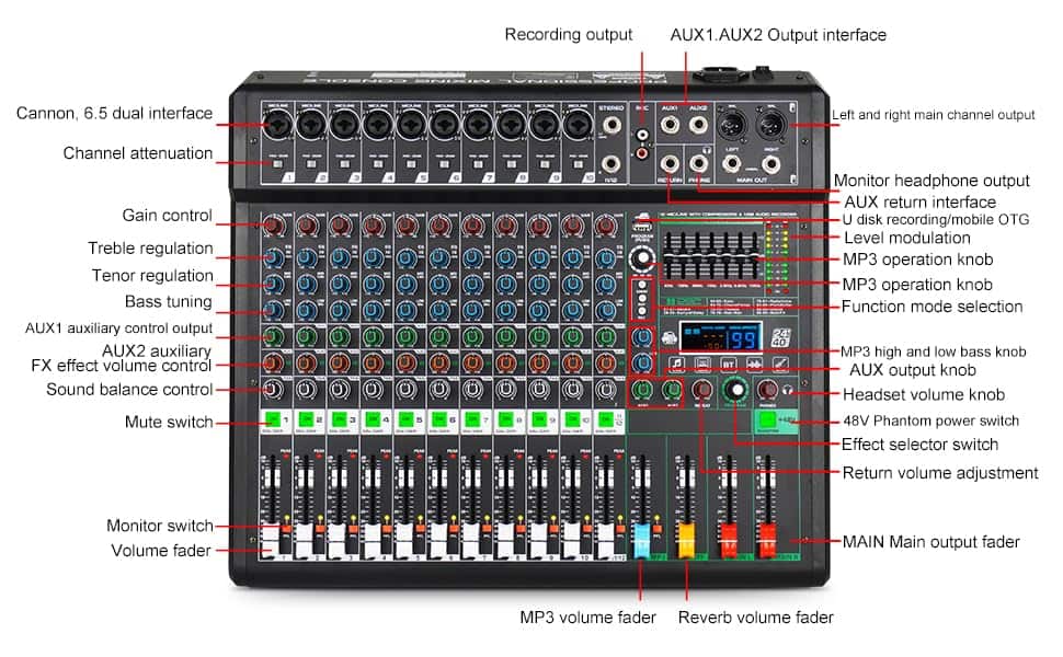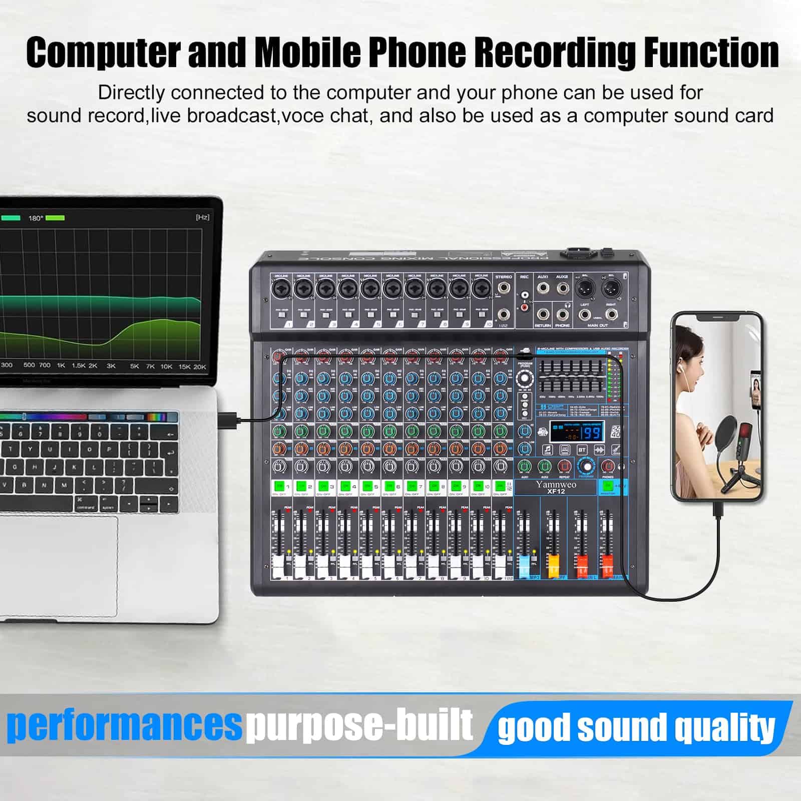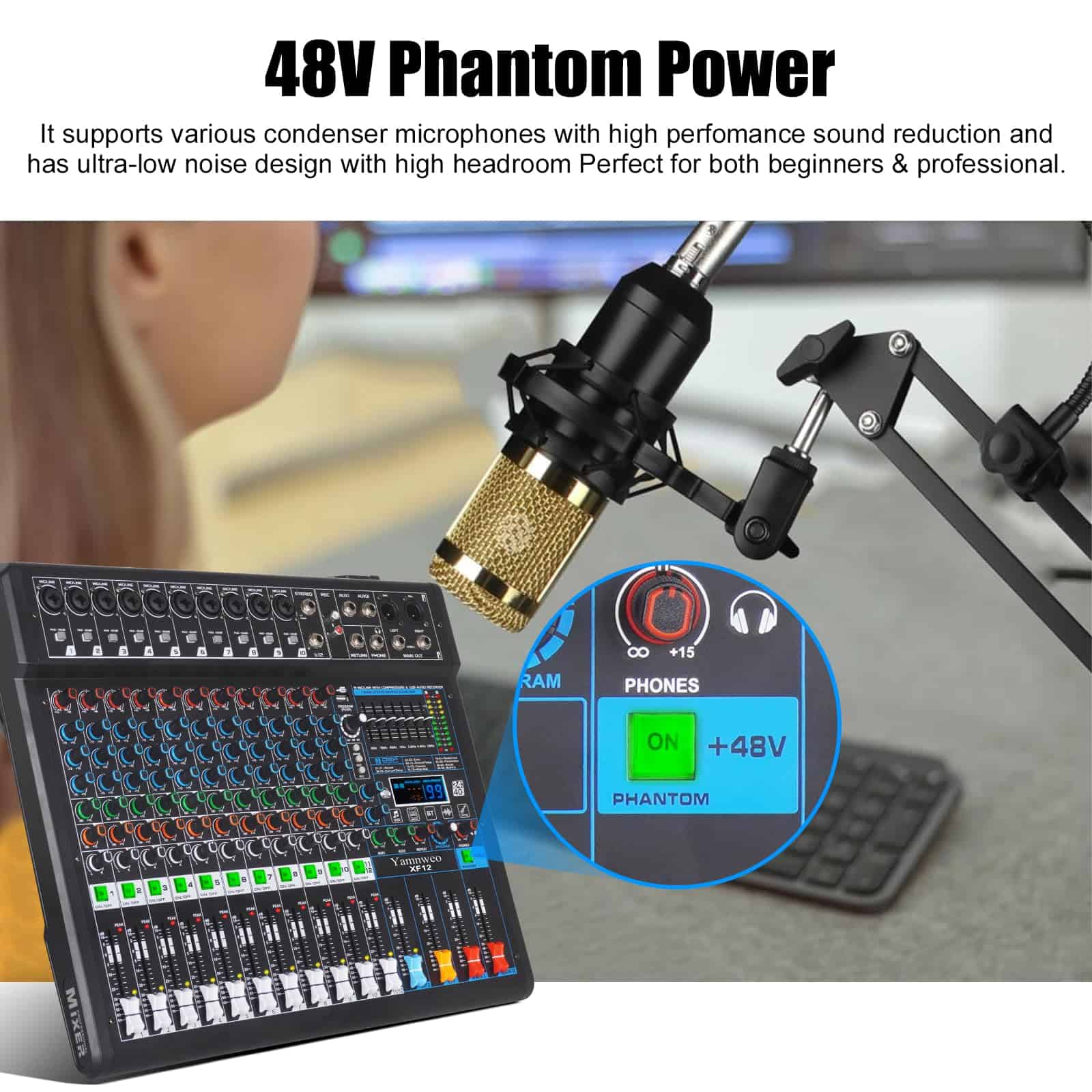 Mezclador de Audio Profesional Yamnweo XF12 Consola de