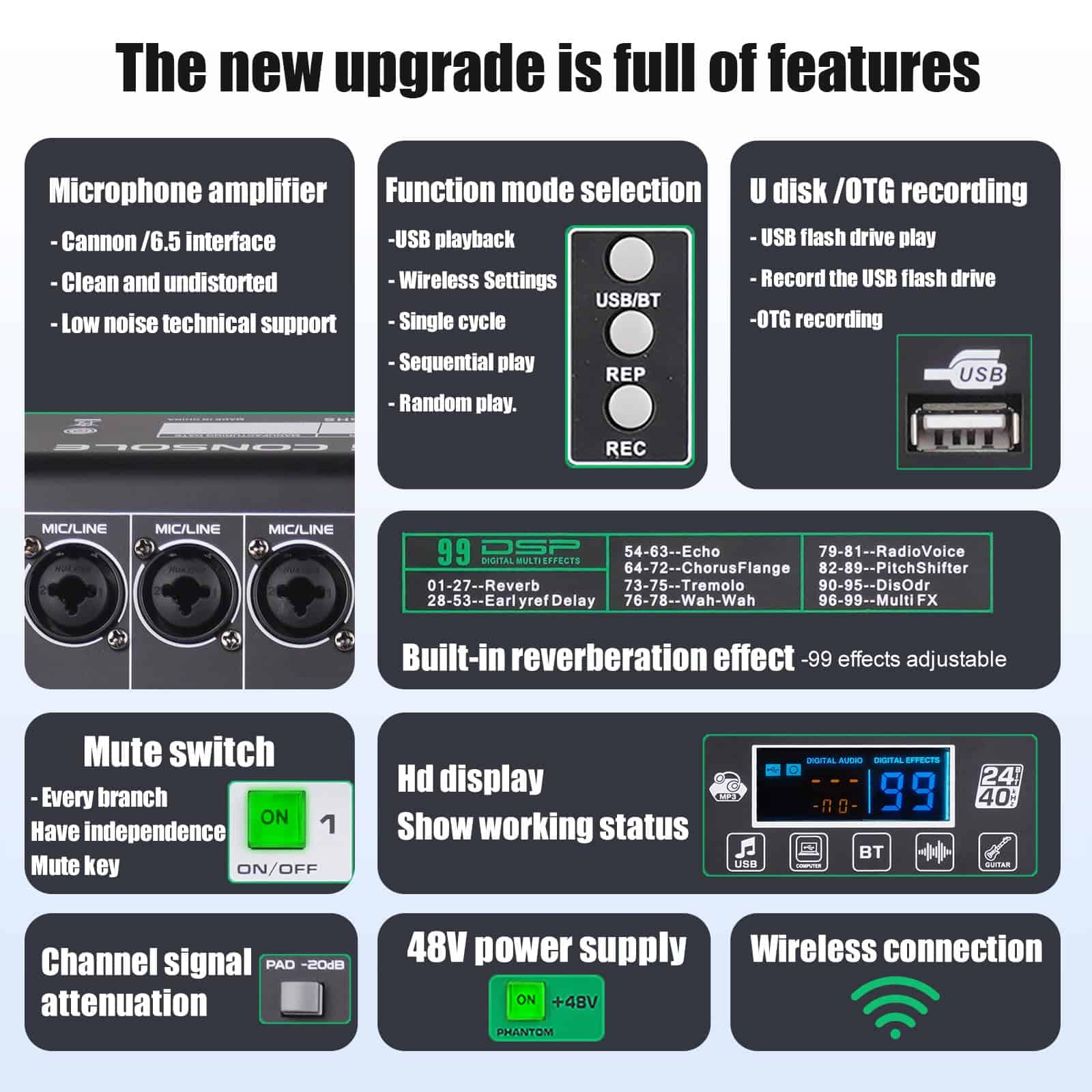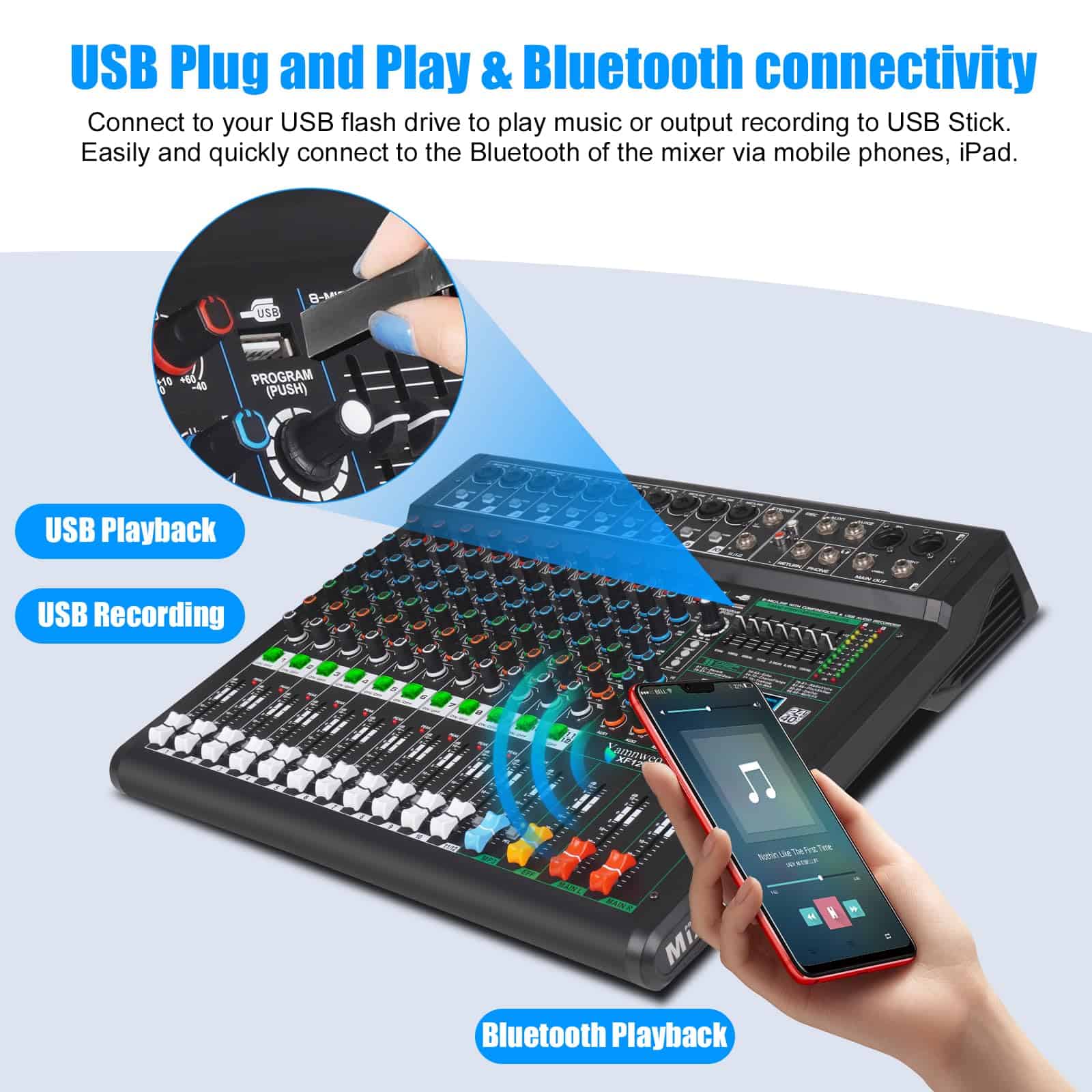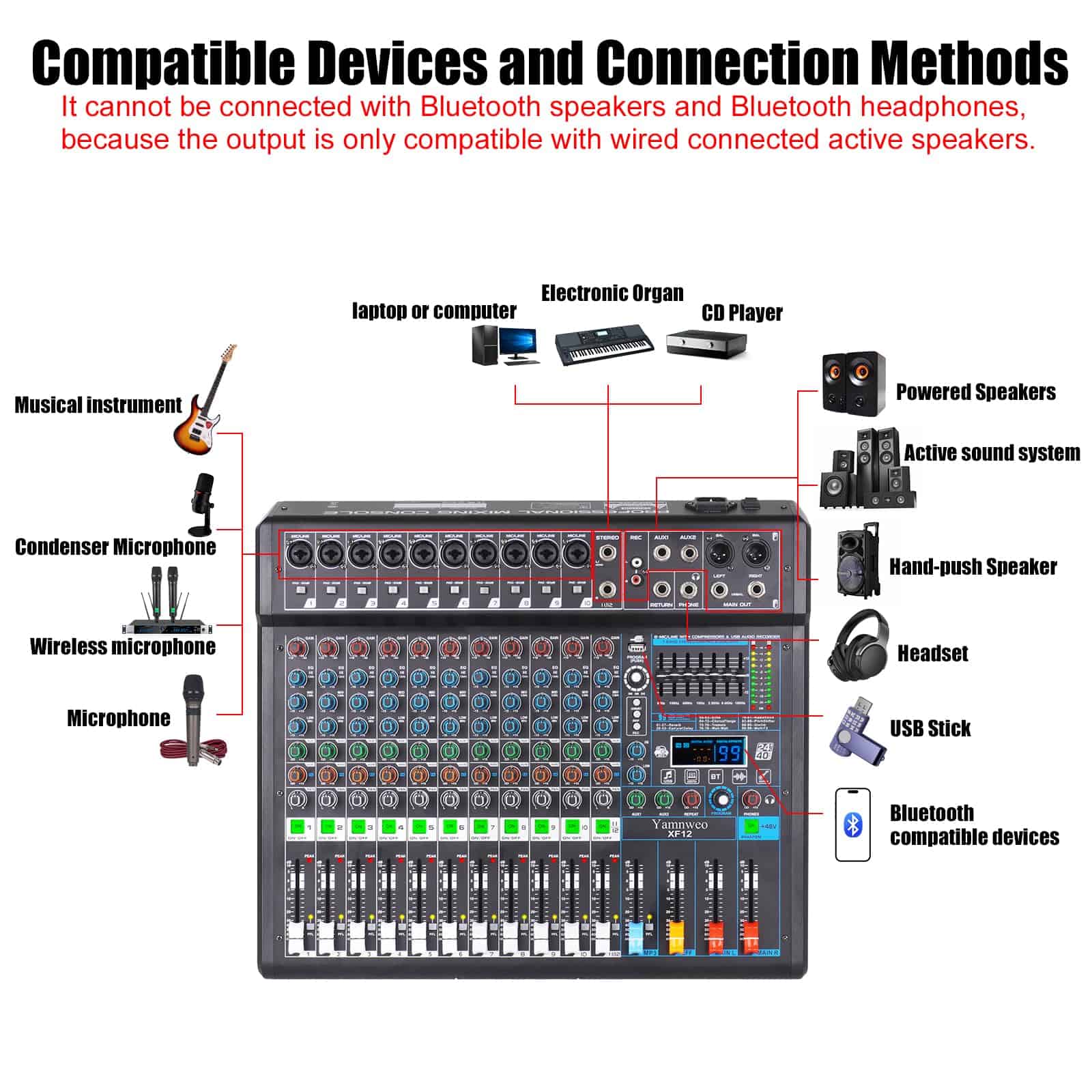 Mezclador de Audio Profesional Yamnweo XF12 Consola de