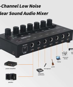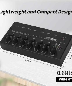 El mezclador de audio Horse puede producir la mayor calidad de sonido en todos los niveles de salida, con operabilidad ultra baja en ruido y excelente rendimiento de audio. Sin distorsiones y fácil de ajustar, muy adecuado para mezclar rápidamente 6 señales de nivel de línea sin complicaciones. El mezclador de audio de 6 canales puede producir la calidad e integridad de señal más alta incluso a niveles máximos. Cada canal tiene una interfaz separada y perilla de control de volumen, sin interferencias entre sí. Compacto y conveniente, con estructura de carcasa de metal resistente y botón de ajuste resistente. Su pequeño tamaño es perfecto para colocarlo en un escritorio o superficie, permitiendo un ajuste rápido y conveniente de monitoreo y mezcla.