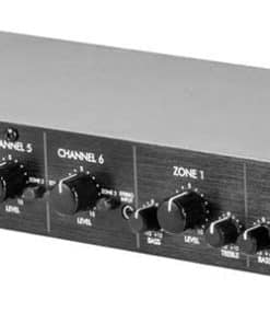 El mezclador estéreo de seis canales ART MX624 con dos salidas de zona es un versátil mezclador de montaje en rack que combina seis canales de entrada independientes y los enruta a dos salidas de zona estéreo. El primer canal se puede utilizar para controlar, a través de un interruptor en el panel frontal, una función de atenuación para todos los otros canales, lo que lo convierte en una solución ideal para sistemas de paging. Todos los seis canales pueden aceptar señales estéreo desequilibradas a nivel de línea. Se puede asignar 48v de alimentación fantasma de forma independiente para cada canal de micrófono. Cada canal tiene controles de nivel independientes y se pueden enrutar de forma independiente a una u otra salida de zona, ambas o ninguna. Controles independientes de nivel, graves y agudos ajustan el sonido de cada salida de zona. Dos entradas de bus permiten la conexión de múltiples unidades cuando se necesitan más canales de entrada. El ART MX624 se puede utilizar en el escenario, en el estudio o para aplicaciones de instalación permanente, incluyendo salas de conferencias, salas de juntas corporativas, iglesias, restaurantes, clubes pequeños, clubes de salud y más. Una fuente de alimentación integrada y un único formato de montaje en rack de 19 pulgadas facilitan la instalación y garantizan un funcionamiento fiable a largo plazo.